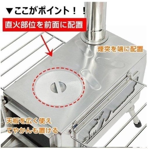 材質:薪ストーブ:ステンレス/煙突・グリル網:ステンレス