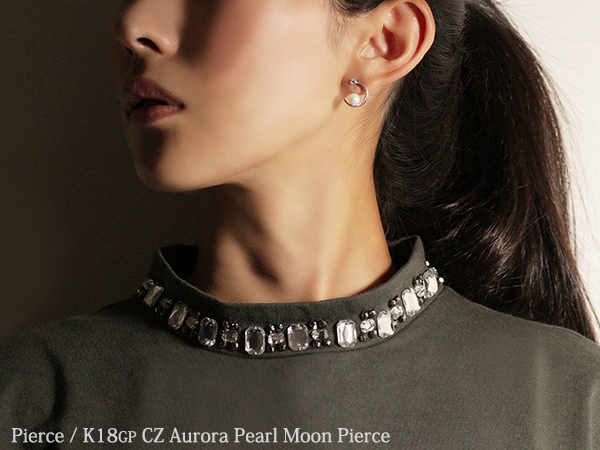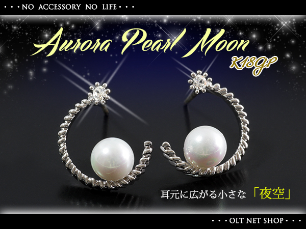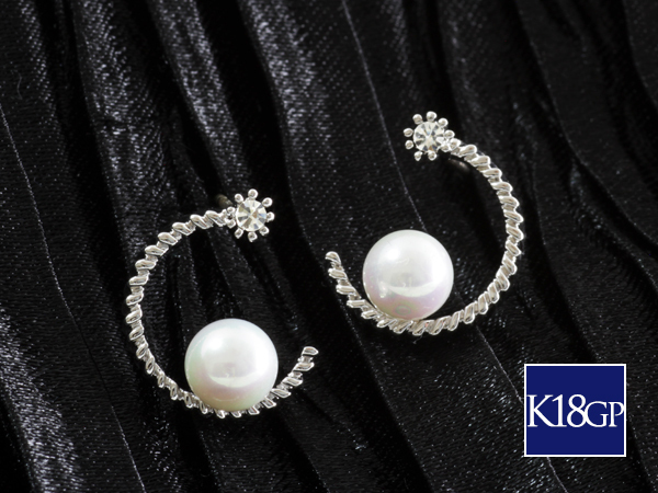 新品/ピアス/K18GP/パール/ダイヤ/シルバー/18金/レディース/真珠/ホワイトゴールド/両耳/スタッド/月/ムーン/星/上品/女性/CZ/WG
