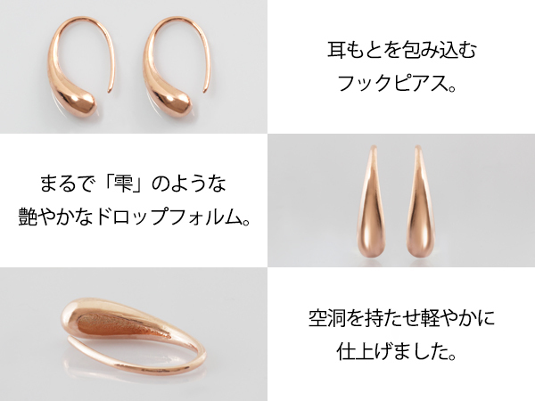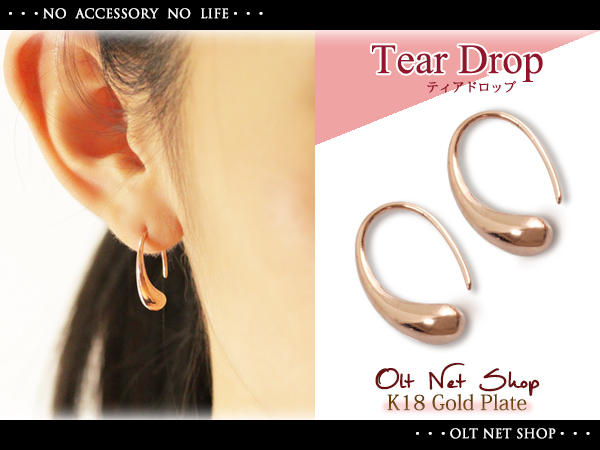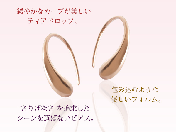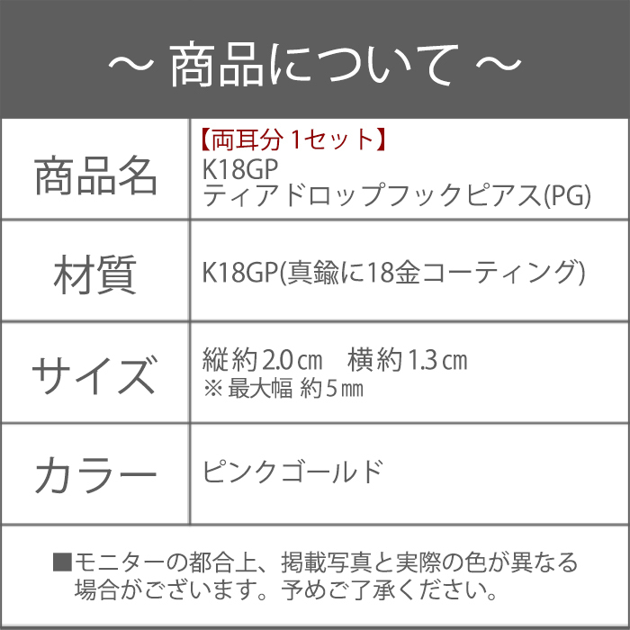 新品/ピアス/K18GP/ドロップ/雫/フック/ピンクゴールド/18金/レディース/両耳/シンプル/しずく/ティア/涙/メタル/上品/女性/PG