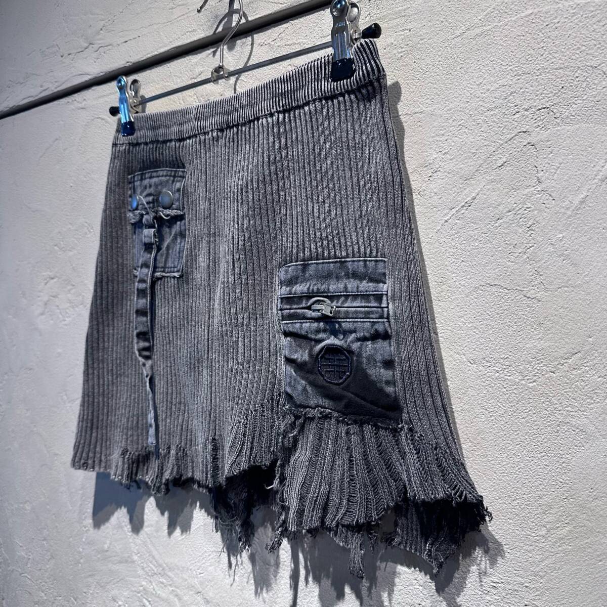 BAD BLOOD バッドブラッド DAMAGE KNIT SKIRT ニットスカート UNDT0901 グレー size:2【代官山A11】