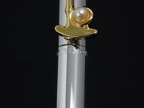 ■美品■ MIKIMOTO ミキモト 本真珠 アコヤ真珠 パール 約3mm ツイスト式 ボールペン 筆記用具 ステーショナリー シルバー系 DI5178