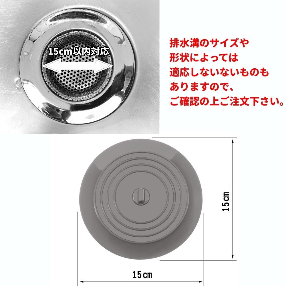 【vaps_2】排水溝カバー 《グレー》 15cm 止水 臭い対策 流し 洗面台 排水口 ゴミ受け シンク シリコン 蓋 ふた 送込