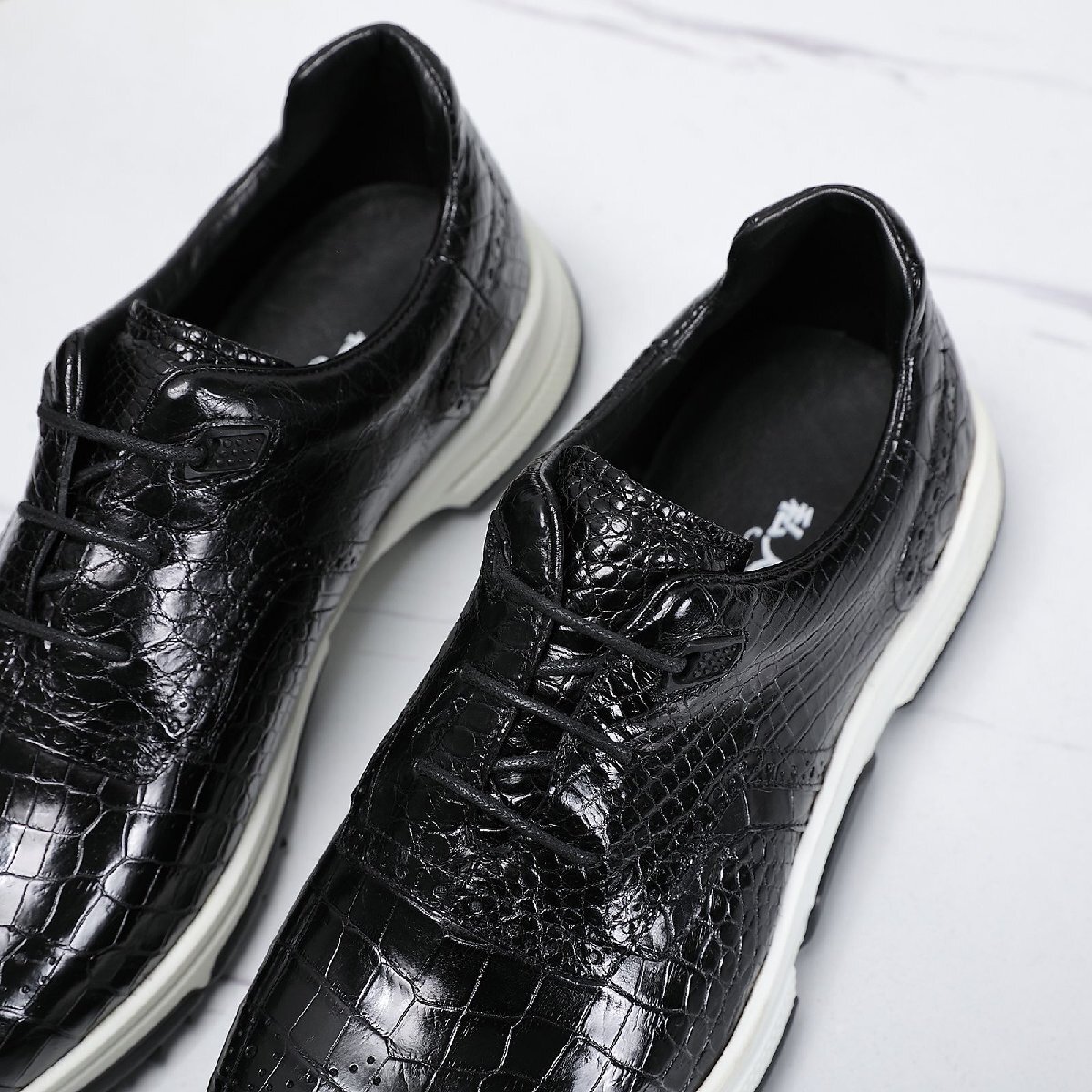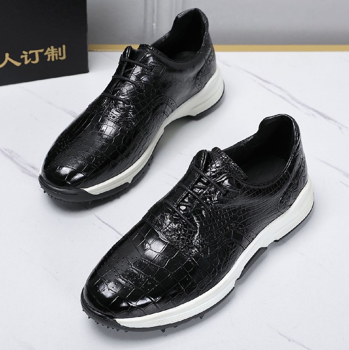クロコダイルレザー スニーカー 最高級 ワニ革 クロコダイル 靴 メンズシューズ 革靴 ブラック 24.0cm 【n792】