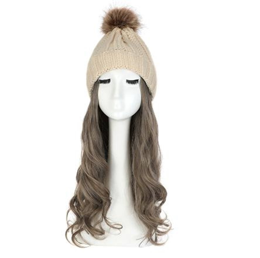 ウィッグ付きニット帽 ニット帽/ベージュ ウィッグカラー/E ロングヘアー イメチェン 髪色チェンジ コスプレ