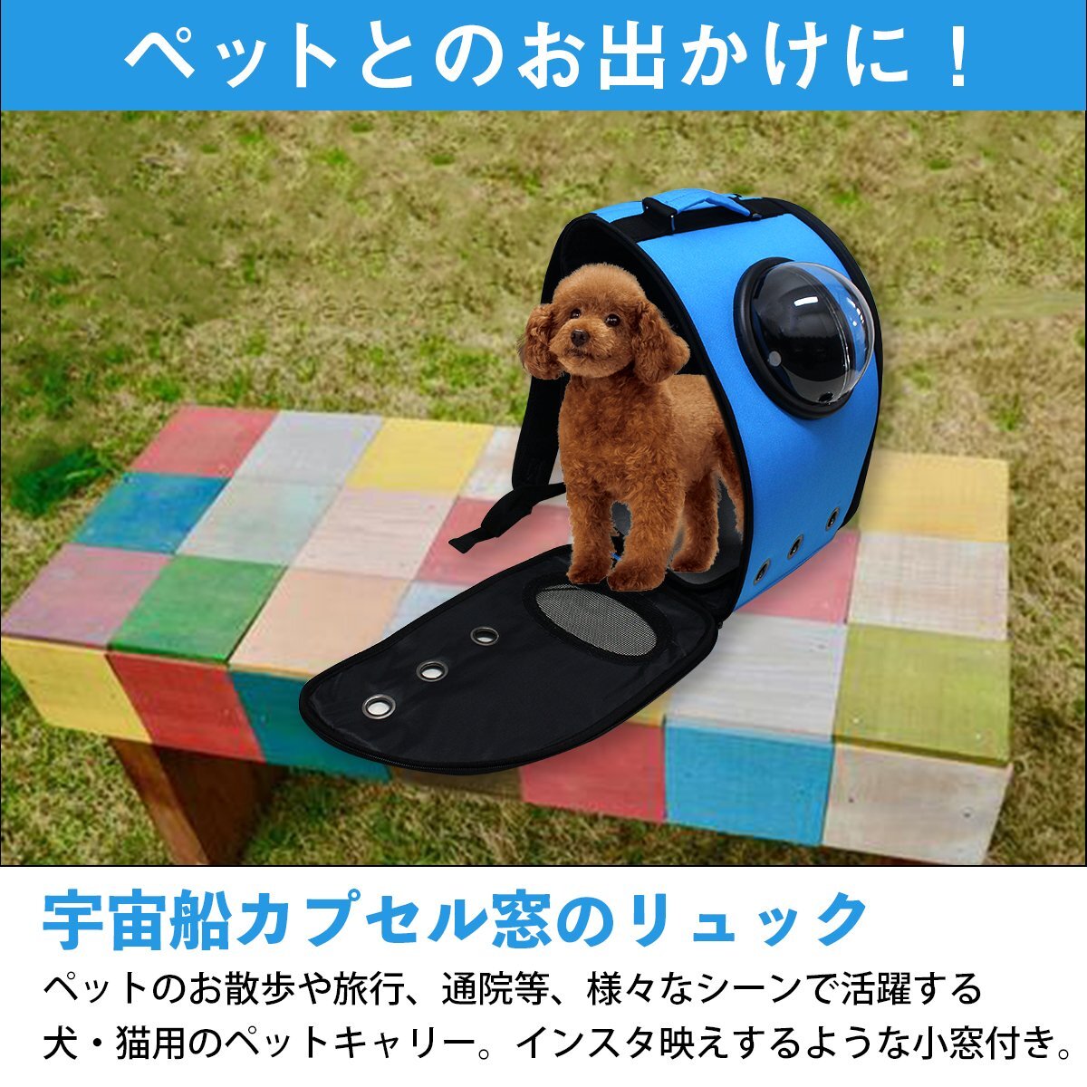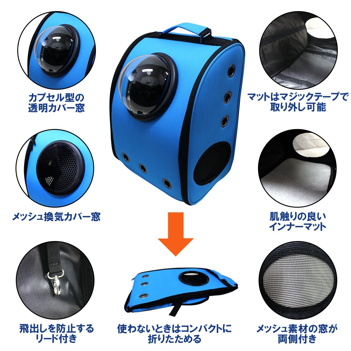 【新品即納】リュック型 ペットバッグ キャリーバッグ 宇宙船カプセル型 ペットキャリー 犬猫兼用 カプセルウィンドウ付 水色