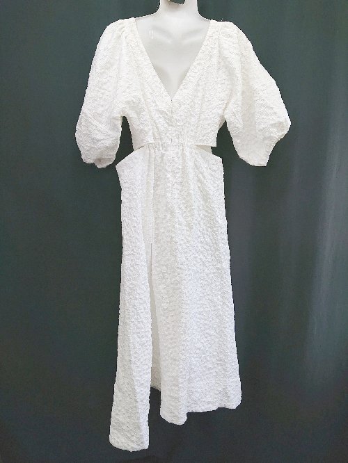 ◇ ⊂ Heather ヘザー 半袖 膝下丈 ワンピース サイズS ホワイト レディース E