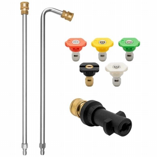 ケルヒャー高圧洗浄機延長ワンド ガタークリーニング用延長ロッド ノズルチップ5個 曲線延長ワンド ケルヒャーに対応 洗車用
