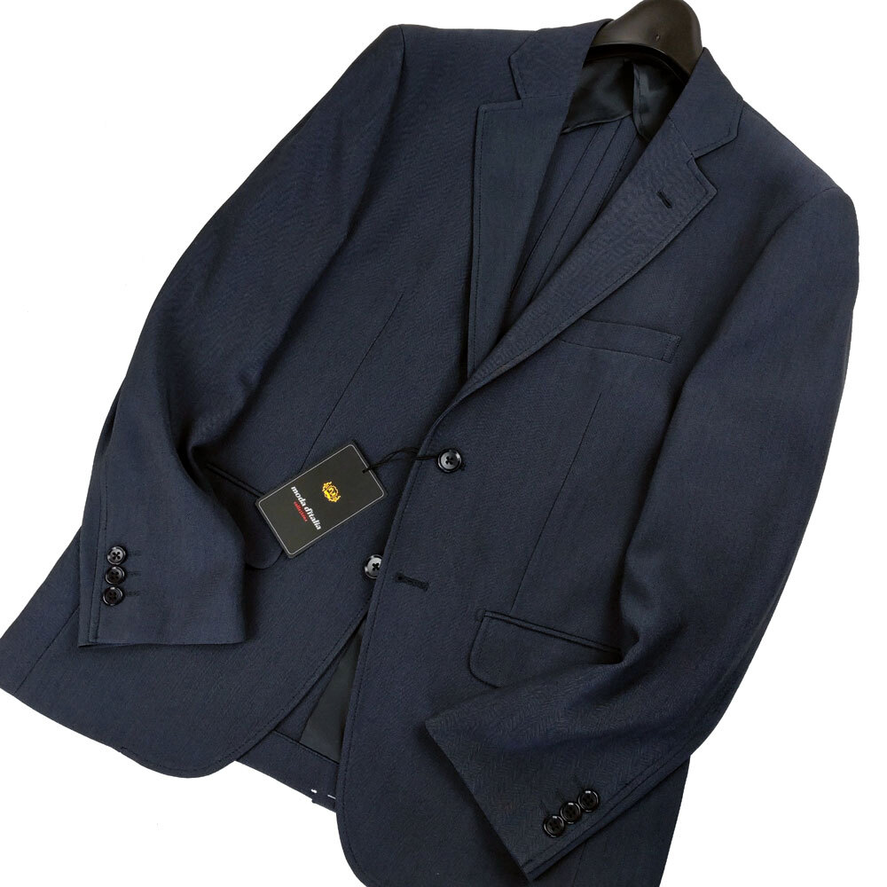 新品 LL ストレッチジャケット オールシーズン 春夏秋冬 快適 軽量 ストライプ 2ボタン シングル テーラード 紺 d498