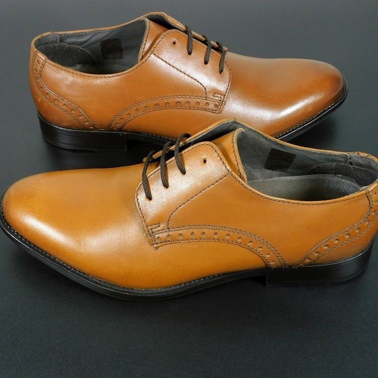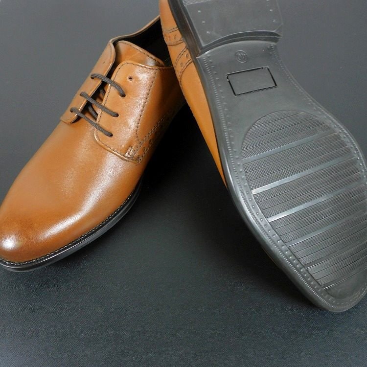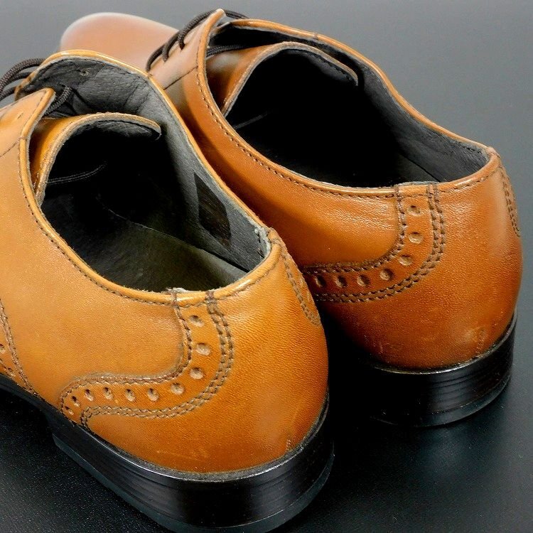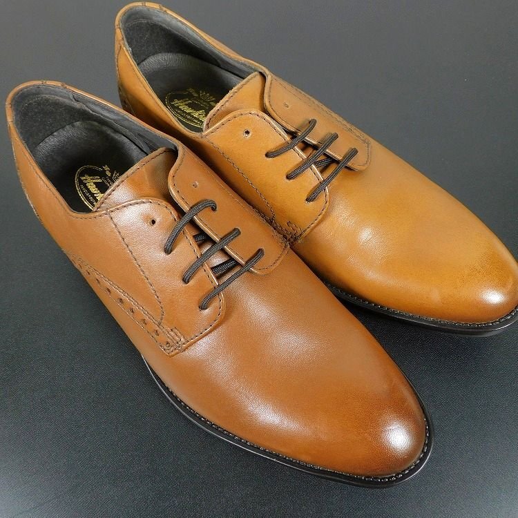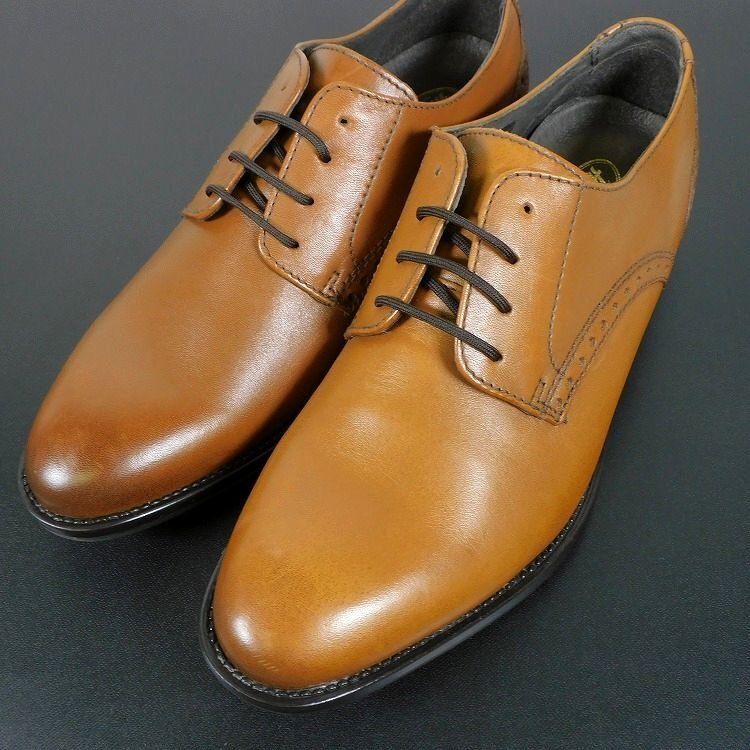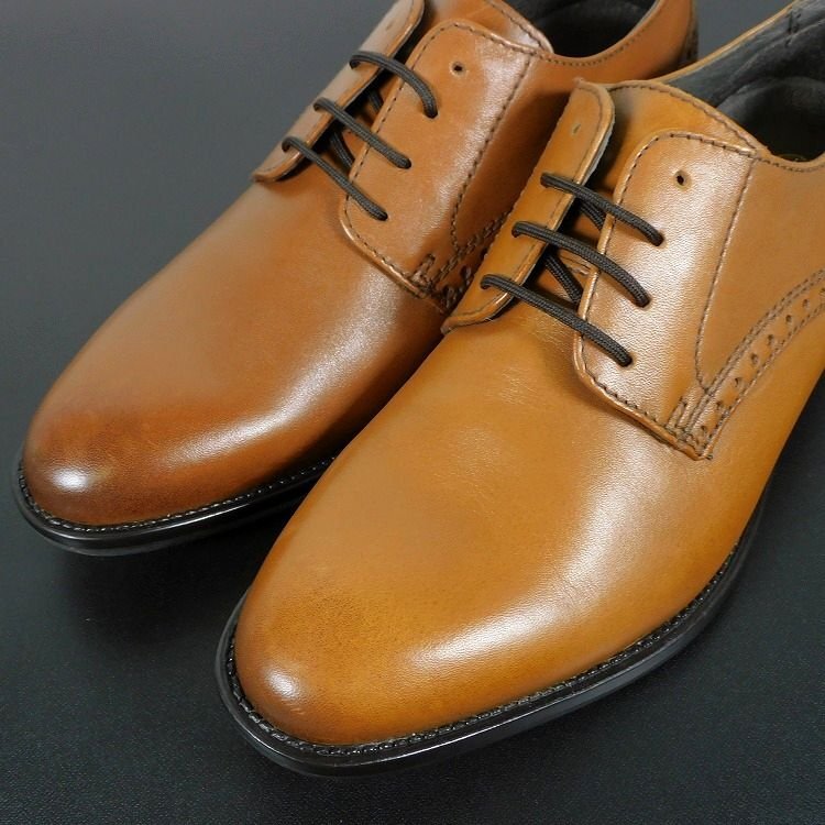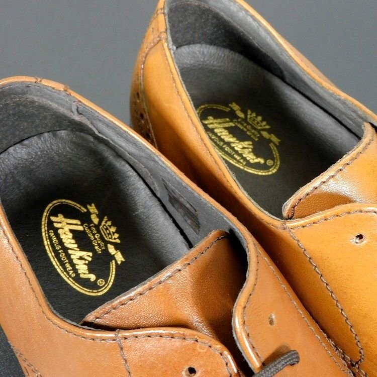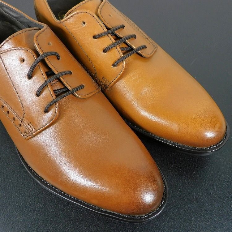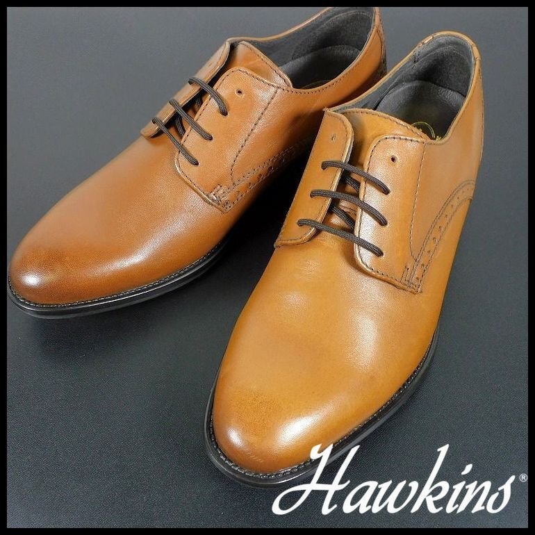 未使用 訳有 1円~ ホーキンス HAWKINS プレーントゥ ビジネスシューズ 25-25.5cm(40) 茶 天然皮革 パーフォーレーション メンズ【4996】