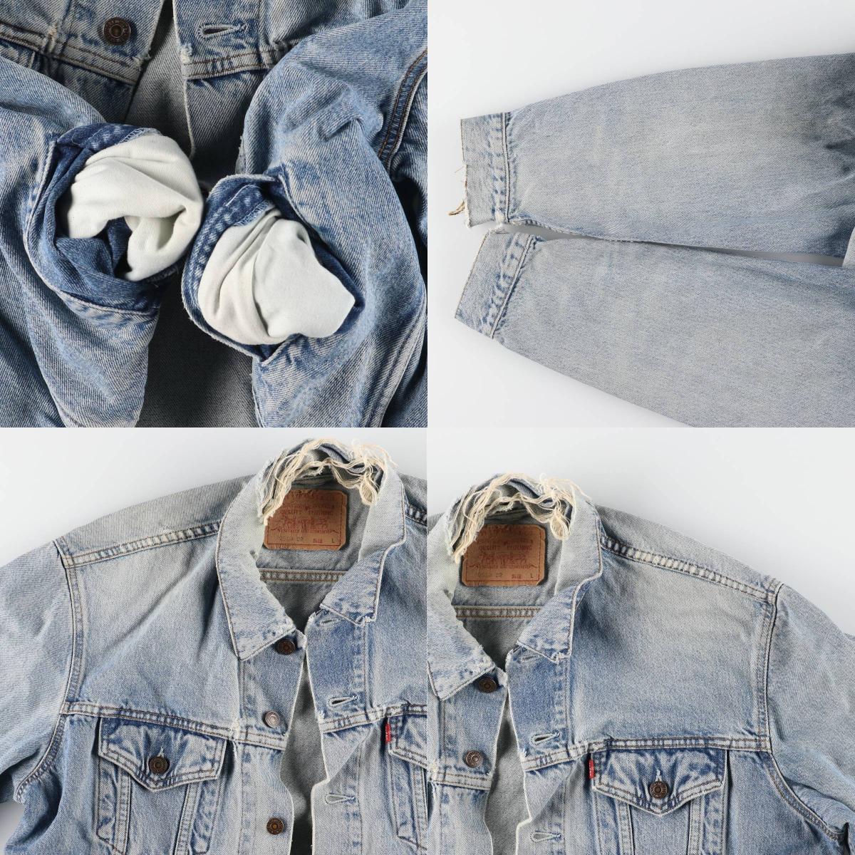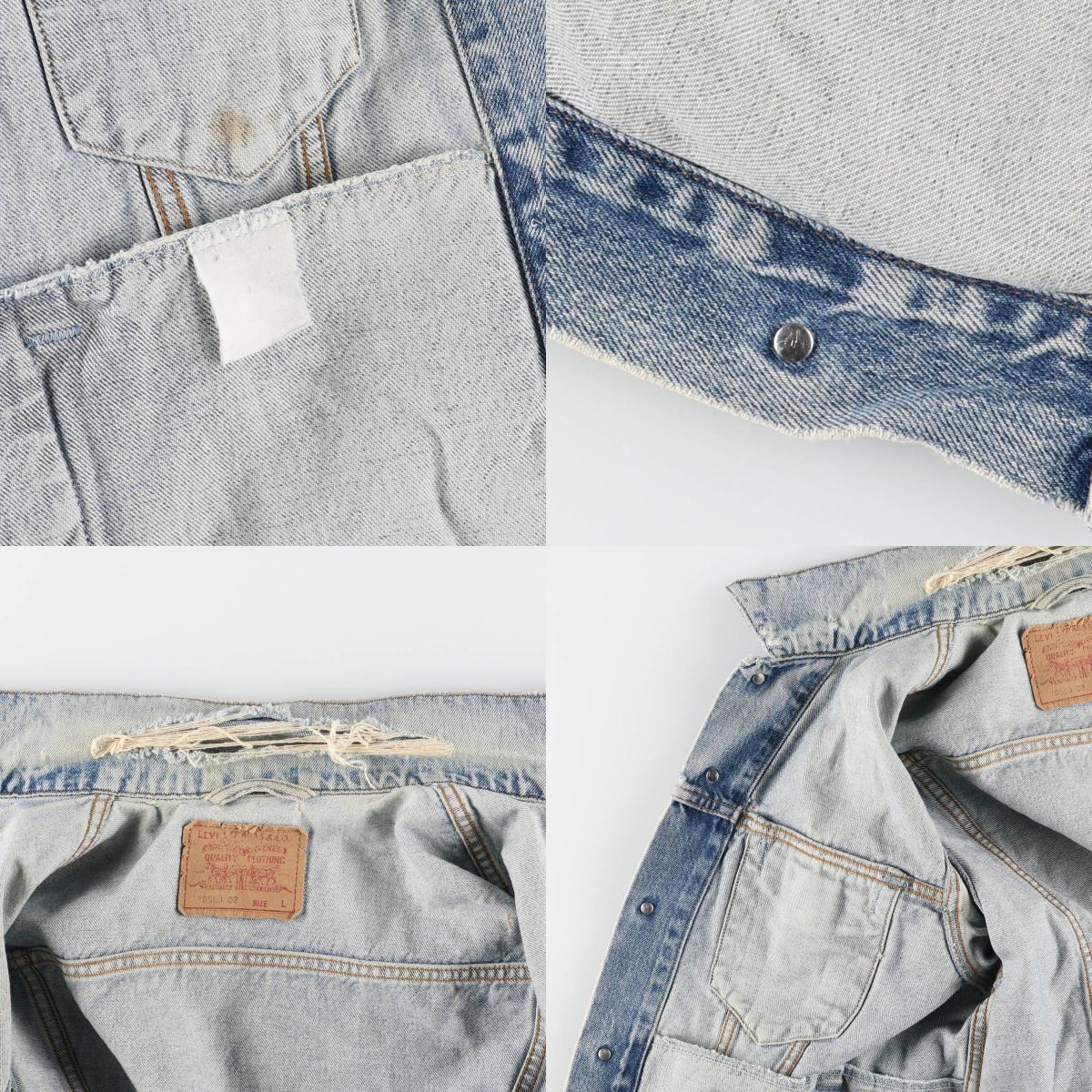 | 表記サイズ: L 着丈: 62cm 身幅: 61cm 肩幅: 51.5cm 袖丈: 62cm ![]() | ![]() ランク:C USEDデニムですので使用感、擦れ、色落ちなどございますが、まだまだご愛用していただけます。 古着という事をご理解の上ご注文よろしくお願いします。 【状態追記】 ●前、両襟・両肩・両ポケット内側・両肘・両袖先・前立て・前立て下に擦れ 両肩・両袖先・裾に汚れ 両袖先にリペア跡 ●後、首周り・背中・左袖前腕に汚れ 背中・両袖前腕に擦れ ●内側、襟に破れ 首周り・胸部・裾に擦れ 首周り・腹部・両袖に汚れ |