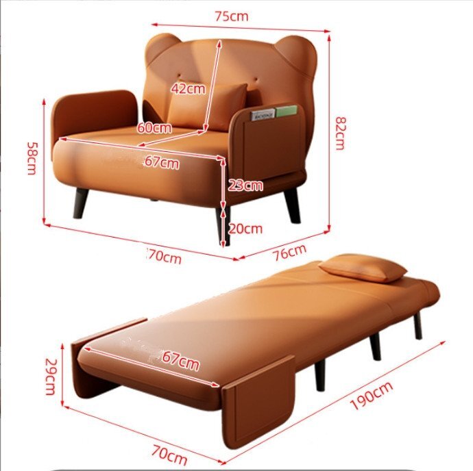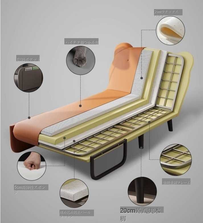 これは多機能のソファベッドで、通常は横になったり、座ったり、眠ったりできます。商品の展開時と収納時の寸法は、最後の写真をご参照ください。