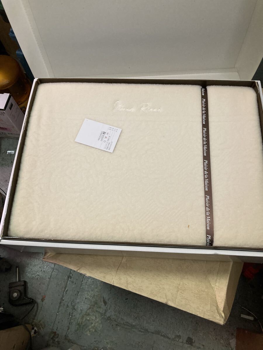 【家財】 ニナリッチ Nina Ricci カシミヤ 入り 毛布 新品 未使用 箱痛み、書き込み等有り