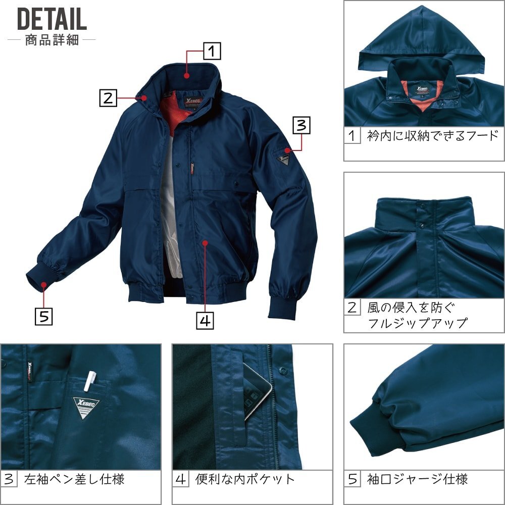 ジーベック 秋冬 軽防寒 ブルゾン 収納式フード 裏起毛で暖かい 262 色:クロ サイズ:S ★ 対象2点 送料無料 ★