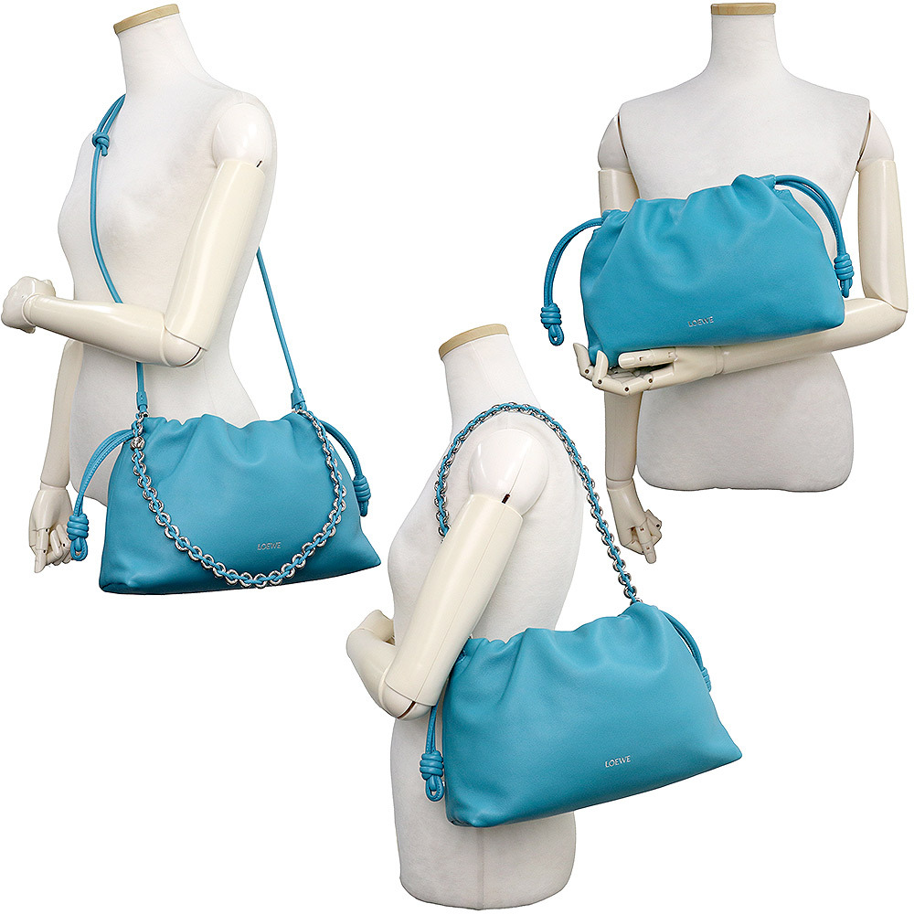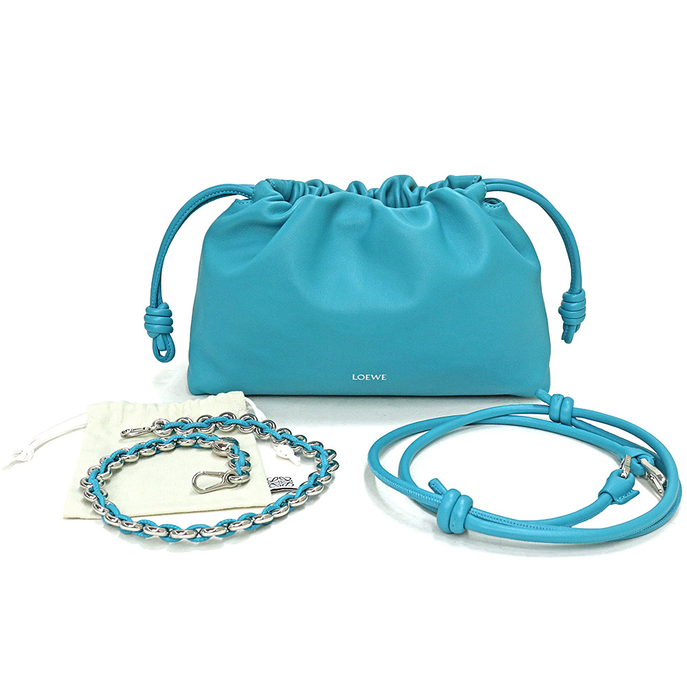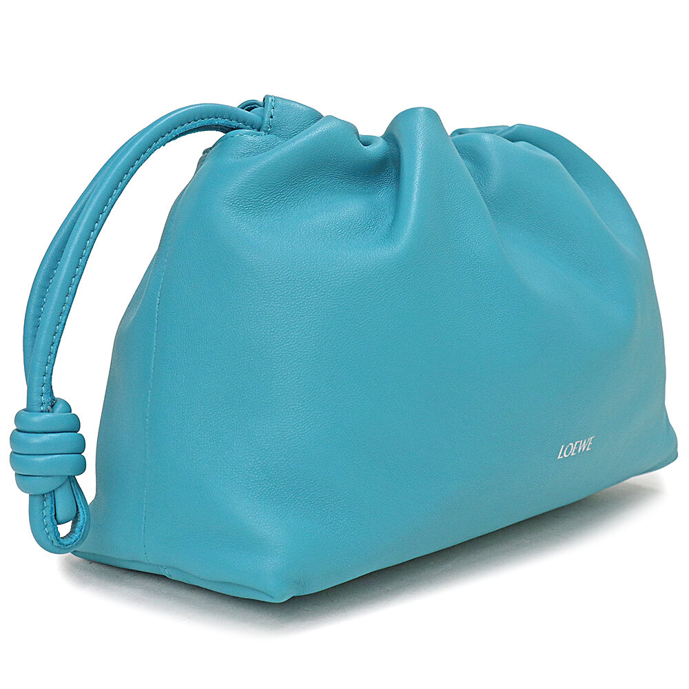 (美品)ロエベ LOEWE フラメンコパース ミディアム ショルダー クラッチバッグ メローナパラム レザー ターコイズ ブルー A411FCRX02