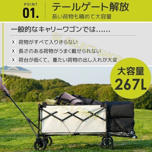 【ホワイト】キャリーワゴン アウトドアワゴン 後ろ開け 折りたたみ コンパクト