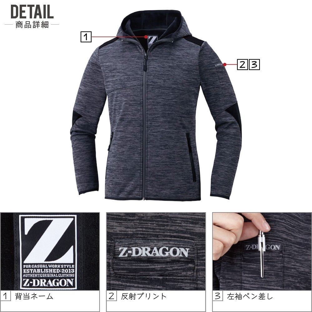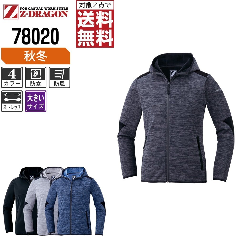 Z-DRAGON ジィードラゴン 秋冬 防風 ストレッチ パーカー 風を通さない三層構造素材 78050 色:ミックスチャコール サイズ:4L