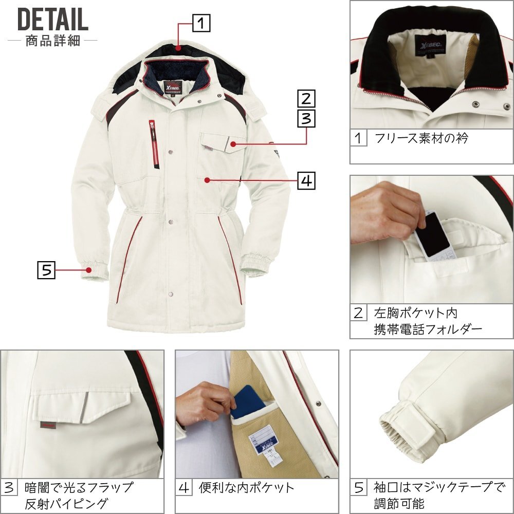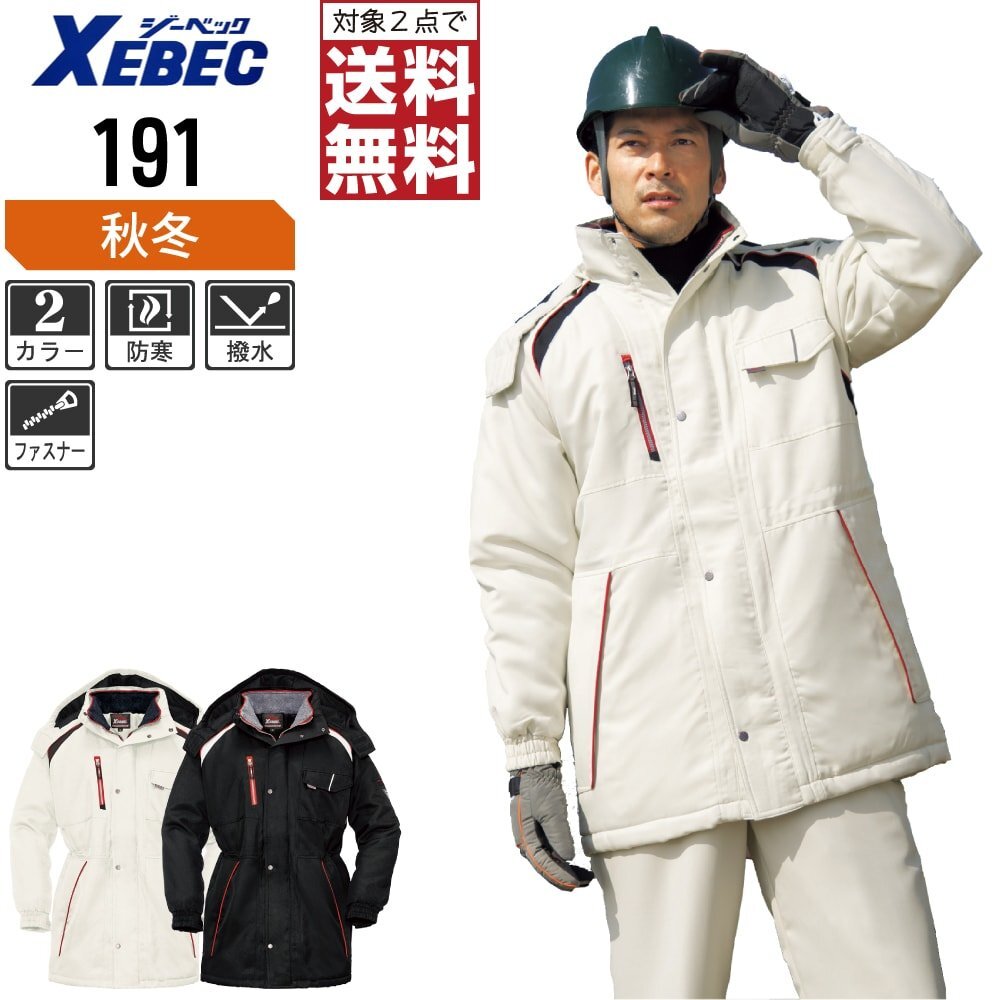 ジーベック 秋冬 中綿 防寒 コート 撥水加工 脱着式フード 襟はフリース素材 191 色:クロ サイズ:3L ★ 対象2点 送料無料 ★