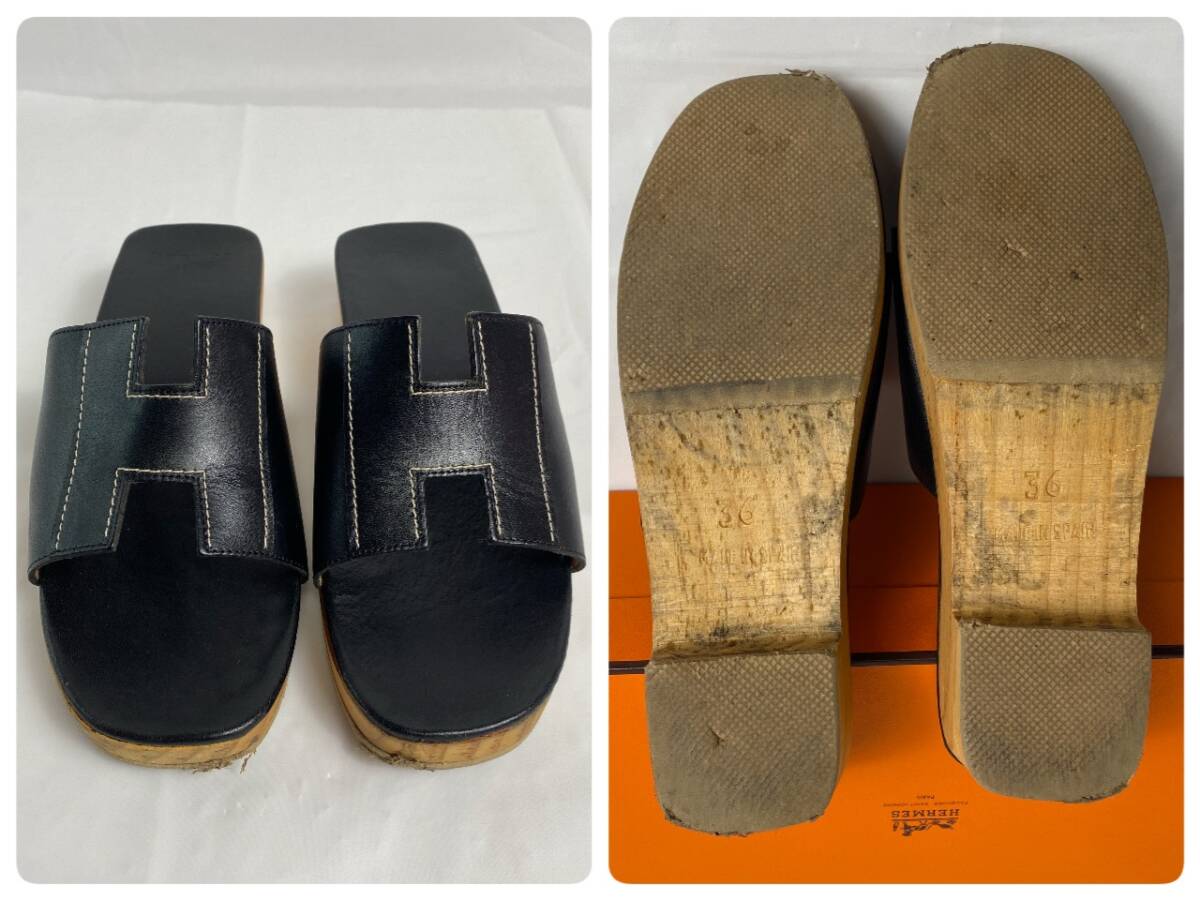 | 中古/現状品】HERMES/エルメス ケブラール ウッドソール サンダル(サイズ36/約23.0cm) ブラック レディース の出品です。 こちらは委託販売です。 ・リサイクルショップで検品・鑑定済みの物を購入、その後使わず保管していました。 ・中古で自宅長期保管品の為、傷や汚れ、変色等があります。 ・現状お渡しです。 素人保管品ですので、完品をお求めの方、神経質な方はご入札をご遠慮ください。 商品は画像にあるもので全てです。 商品詳細 中古/現状品】 HERMES/エルメス ケブラール ウッドソール サンダル サイズ36/約23.0cm ブラック レディース 全長約23cm/幅約8cm/ヒール高さ約4cm 素人採寸です。若干の誤差はご容赦ください。 この商品に関して詳しくありませんので、ご質問には分かる範囲でお答えします。 申し訳ございませんが、よろしくお願いいたします。 *ご使用のモニタやブラウザによって、画像の色味が異なって見えることがあります。 お客様へのお知らせ *落札後は24時間以内のお取引開始と72時間以内のご入金をお願い致します。 *24時間以内に連絡がない方、新規の方は落札を削除する場合があります。 *恐れ入りますが、落札後はノークレーム・ノーリターンでお願い致します。 *取引連絡や質問などは21時以降の場合、翌日の返信になってしまう場合がございます。 *入札後の取り消しは出来かねますので十分にご確認してからの入札をお願い致します。 *運送破損等の場合は出来る限り迅速に対処致しますので、評価でご報告される前に当方に ご連絡下さい。全てのお取引が終了してからの評価をお願い致します。 *不安な事やお問い合わせ等ございましたらお気軽にご連絡ください。 <評価の件> 評価不要な方が時々いらっしゃいますので、当方から先に評価は致しません。 評価を頂きましたら、折り返し評価を送らせて頂きます。 ご理解のほど、どうぞよろしくお願い致します。 | |||