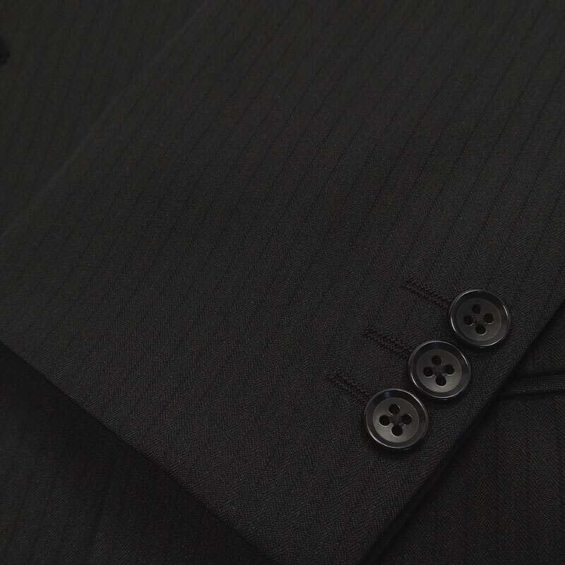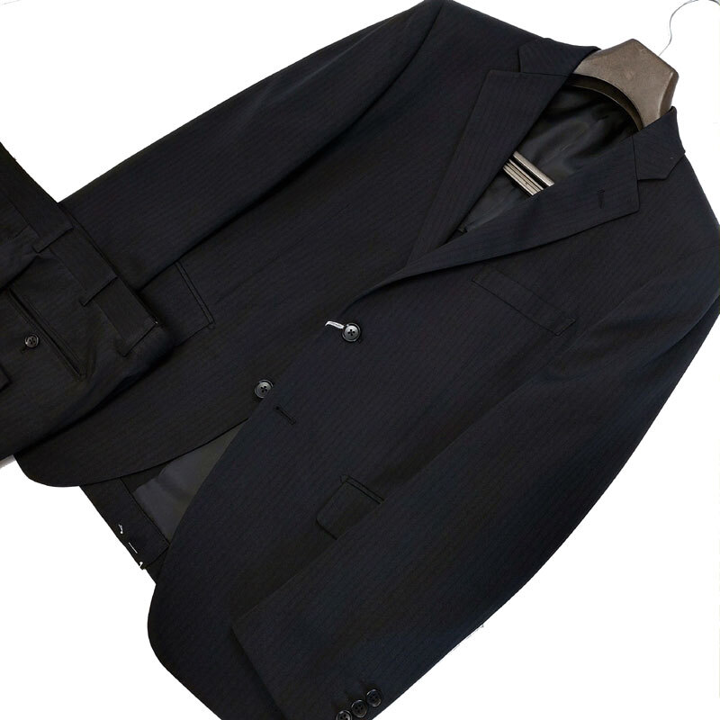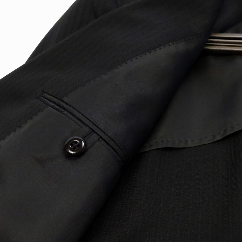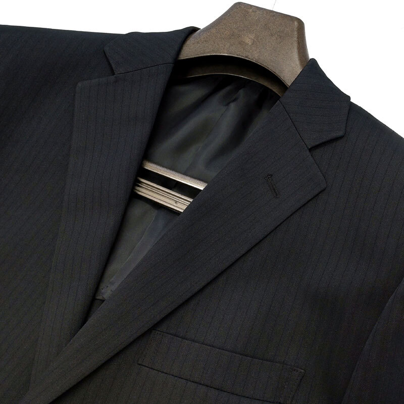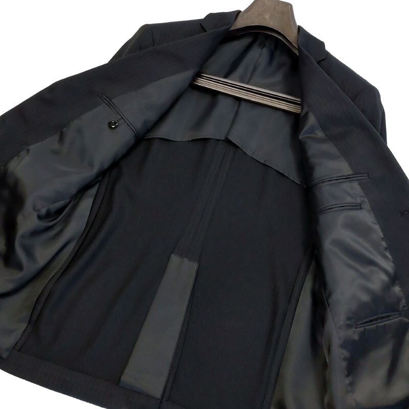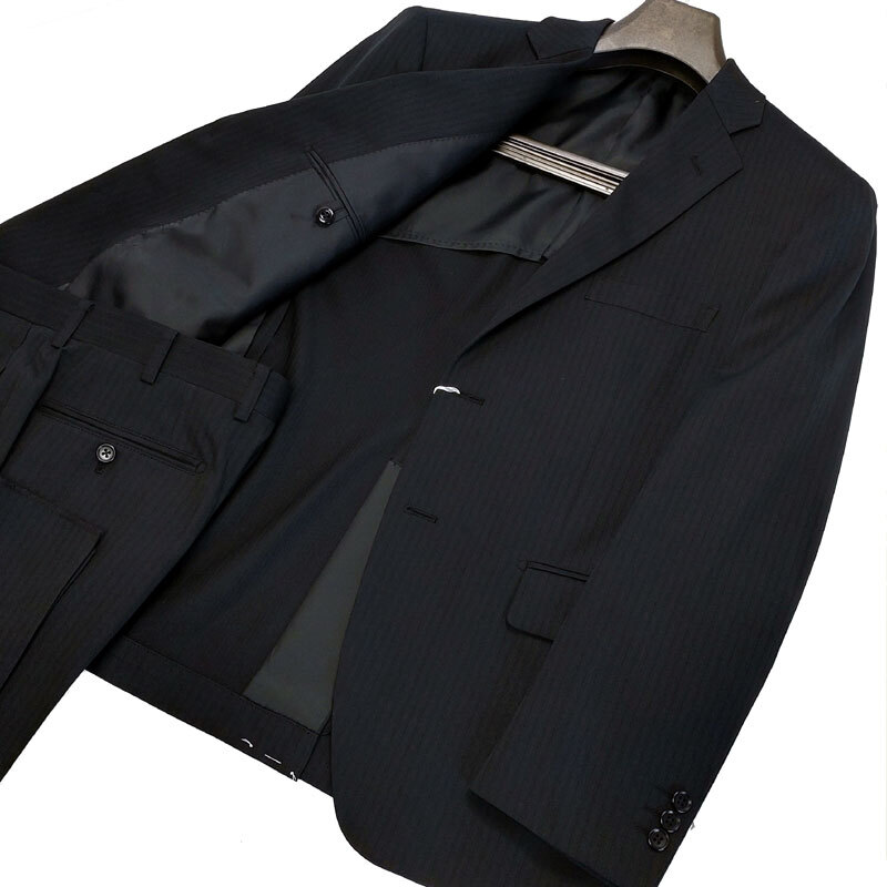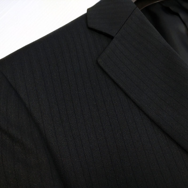 新品 AB5 身長170 胴囲86 オールシーズン 春夏秋冬 シングル 2ボタン ストライプ ストレッチ 防シワ ウオッシャブル 黒ブラック d563