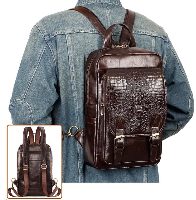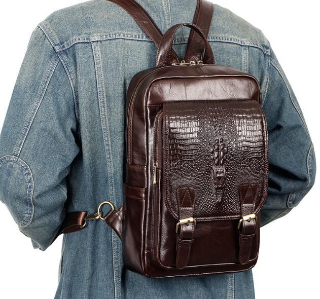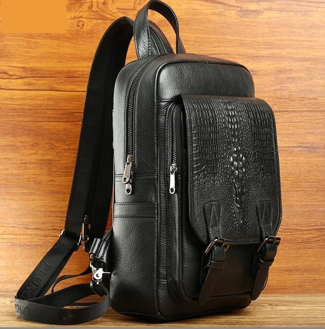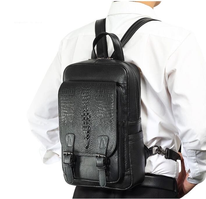 上質 本革牛革メンズ レザーバッグ クロコダイル型押し ボディーバッグ 2WAY バッグパック リュックサック 大容量 多機能 黒 お色選択可