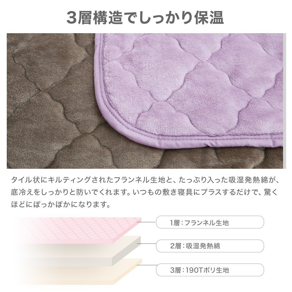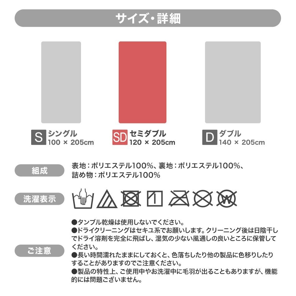 | さわり心地抜群!シルキータッチの優しい肌触り +2℃のあたたかさ! 身体から発散される水分を熱に変える吸湿発熱繊維"F-Tech"を使用。 抗菌防臭効果のあるフランネル生地を含む3層構造でしっかり保温! また、丸洗いOKなのでいつでも清潔です。 今年の冬はあったか敷パッドでぐっすり寝ましょう!! 【商品内容】 敷きパッド×1 【商品詳細】 サイズ:セミダブル (約)120×205cm カラー:アッシュグレー ▼セットでオススメ あったかブランケット毛布(SD)▼ FEF003 あったかブランケット SD 【注意事項】 ・タンブル乾燥は使用しないでください。 ・ドライクリーニングはセキユ系でお願いします。クリーニング後は日陰干しでドライ溶剤を完全に飛ばし、湿気の少ない風通しの良いところに保管してください。 ・長い時間濡れたままにしておくと、色落ちしたり他の製品に色移りしたりすることがありますのでご注意ください。 ・製品の特性上、ご使用中やお洗濯中に羽毛が出る事もありますが、機能的には問題ございません。 ・商品は、モニターによって色合いが異なって見える場合があります。 |