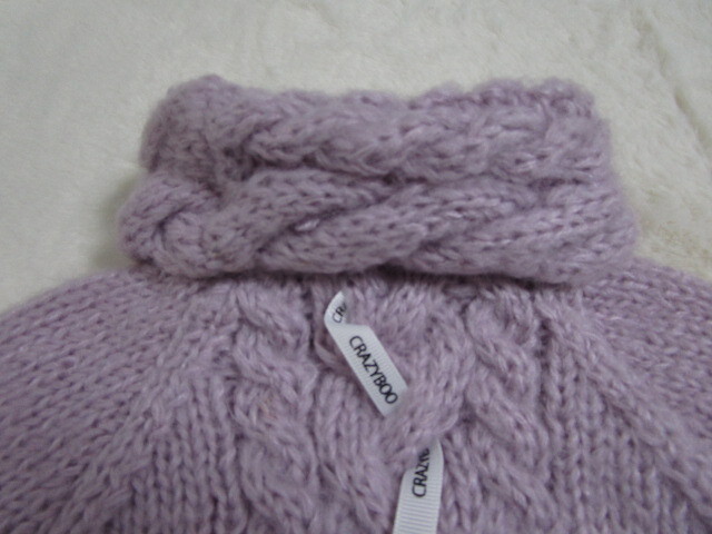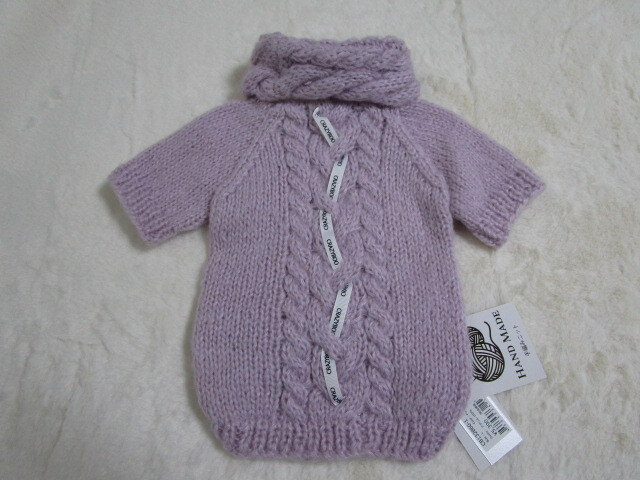 CRAZY BOO クレイジーブー Lサイズ 胴回り40cm CBロゴ付手編みセーター パープル タグ付新品 定価5390円