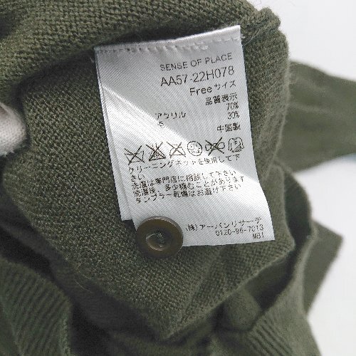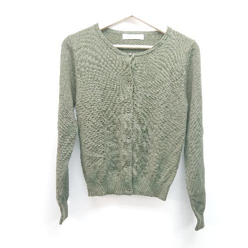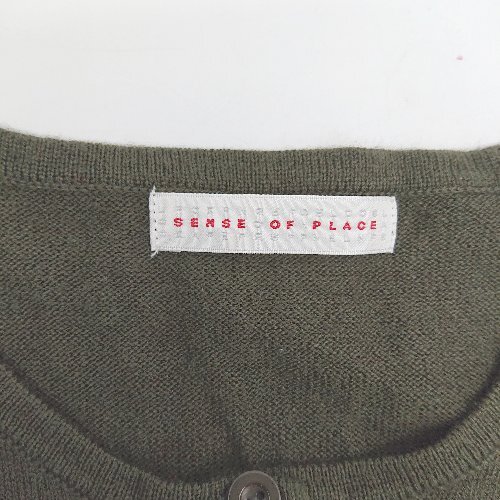 ◇ ◎ SENSE OF PLACE ラウンドネック フロントボタン 薄手 長袖 カーディガン サイズFREE ダークグリーン レディース E