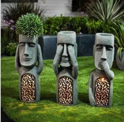 ソーラー ガーデンライト モアイ像 言わない ガーデンライト 植木鉢 ユニーク n912