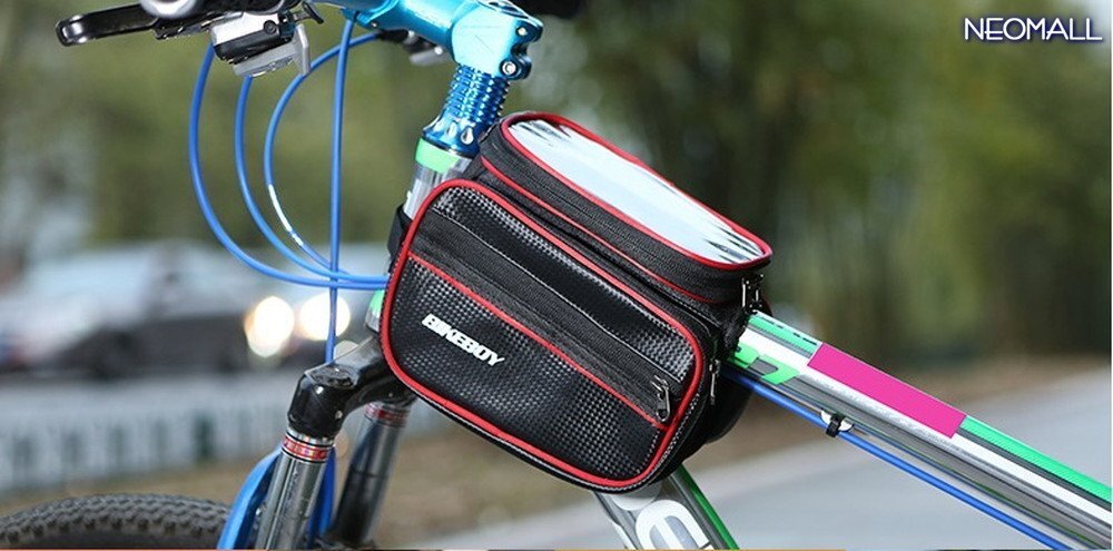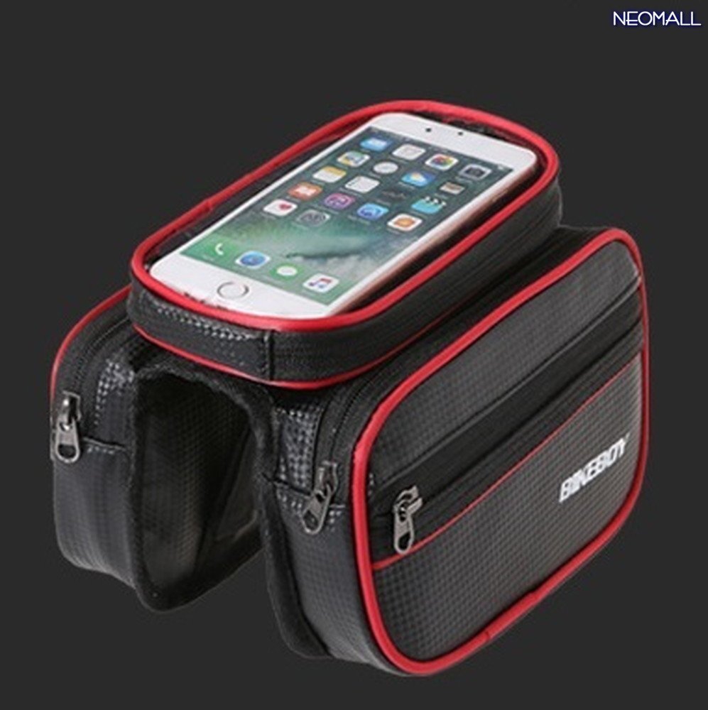 便利アイテム☆ トップチューブバッグ レッド スマホ ケース タッチパネル ポーチ 5.7インチ フロント バック 自転車 パーツ 【apa-377】
