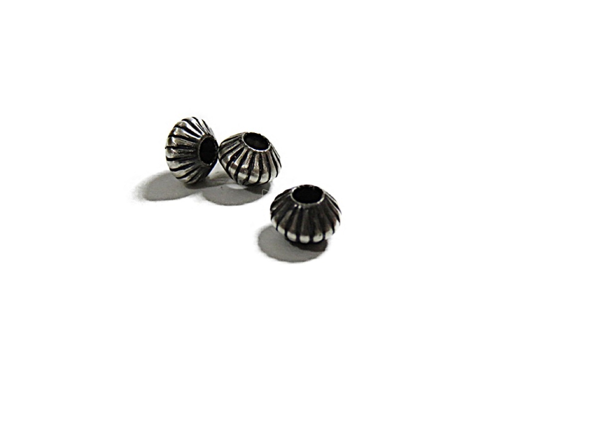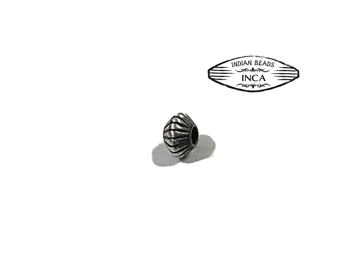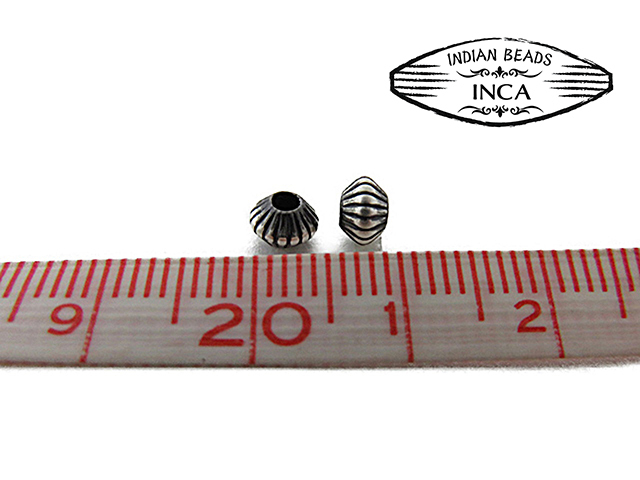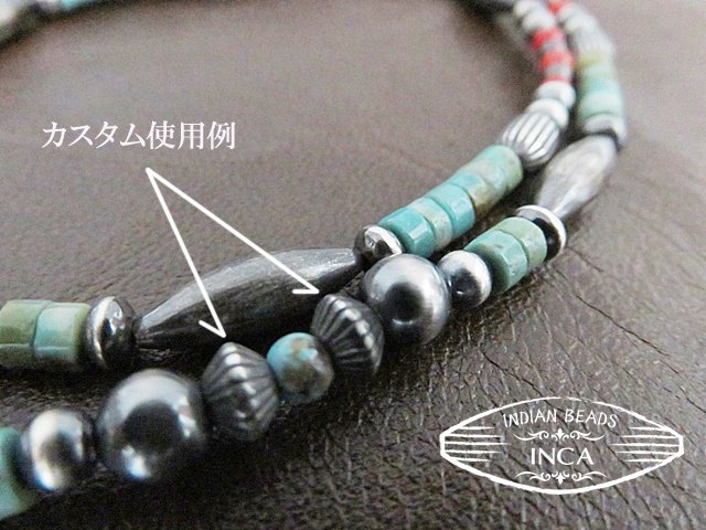 コルゲート(縞)ビーズの粒売りはあまり見かけませんのでカスタムされる方いかがでしょうか?インディアンジュエリーの良いアクセントになります。中空ビーズなので軽く女性でも気軽にお使い頂けます。革紐に通される方は太さにご注意下さい