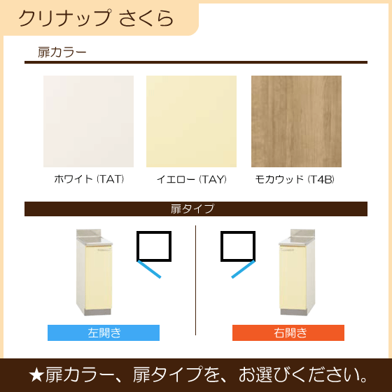 ■ 扉カラーは、ホワイト(TAT)、イエロー(TAY)、モカウッド(T4B)の3色から選べます。