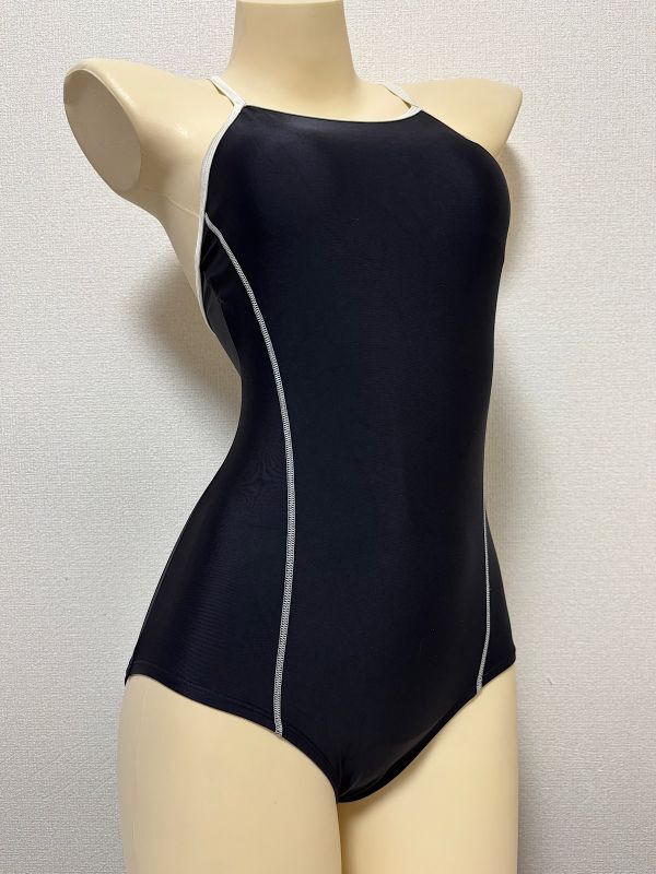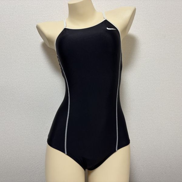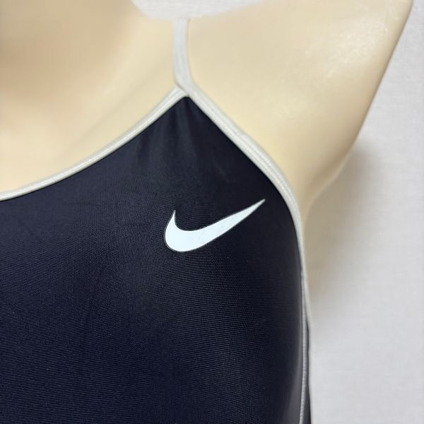 21ナイキNIKE女子競泳水着XLサイズ★白パイピング・光沢黒ブラック白ホワイト★大きいサイズ男性も