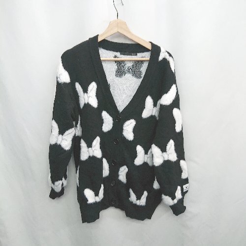◇ ⊇ Heather ヘザー DISNEY 総柄 長袖 カーディガン サイズF ブラック ホワイト レディース E