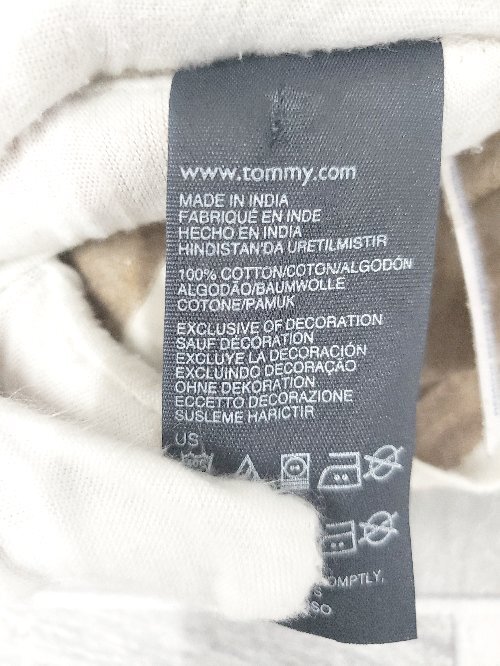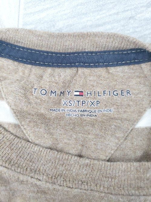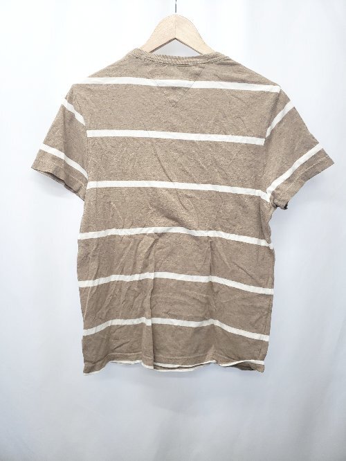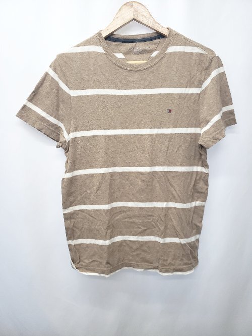 ◇ ⊂ TOMMY HILFIGER トミーヒルフィガー ボーダー 半袖 Tシャツ カットソー サイズXS ベージュ ホワイト レディース E