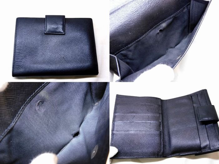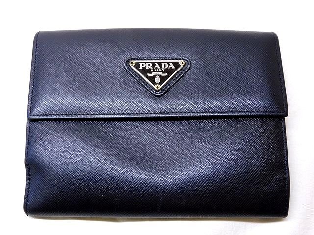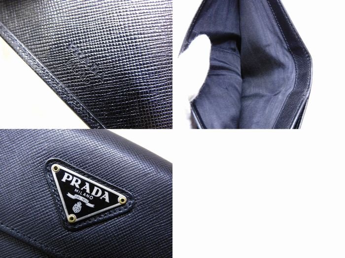 プラダ 2つ折り 財布 ■ 三角ロゴプレート レザー ブラック 黒 メンズ レディース コンパクト ウォレット PRADA