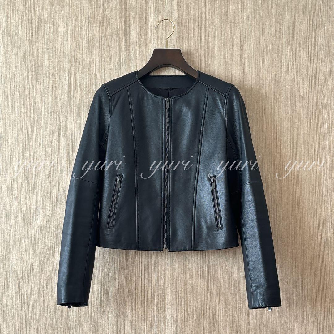 毎年ご好評頂いているANAYIのノーカラーレザージャケットは、シンプルなクルーネックデザインできれいめなコーディネートにも合う、着回し易い仕様が人気の理由。