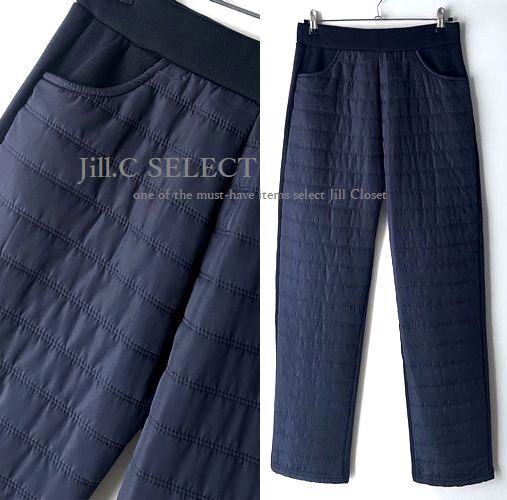 新品LL*NAVY【送料185円】伸縮◎キルト×ストレッチ素材*裏シャギーデザイン* ウエスト総ゴム♪ストレートパンツ*ポケット付7760