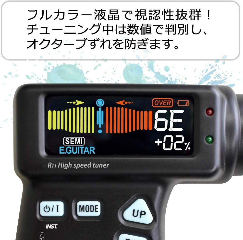 フルカラー液晶で視認性抜群!チューニング中は数値で判別し、オクターブずれを防ぎます。