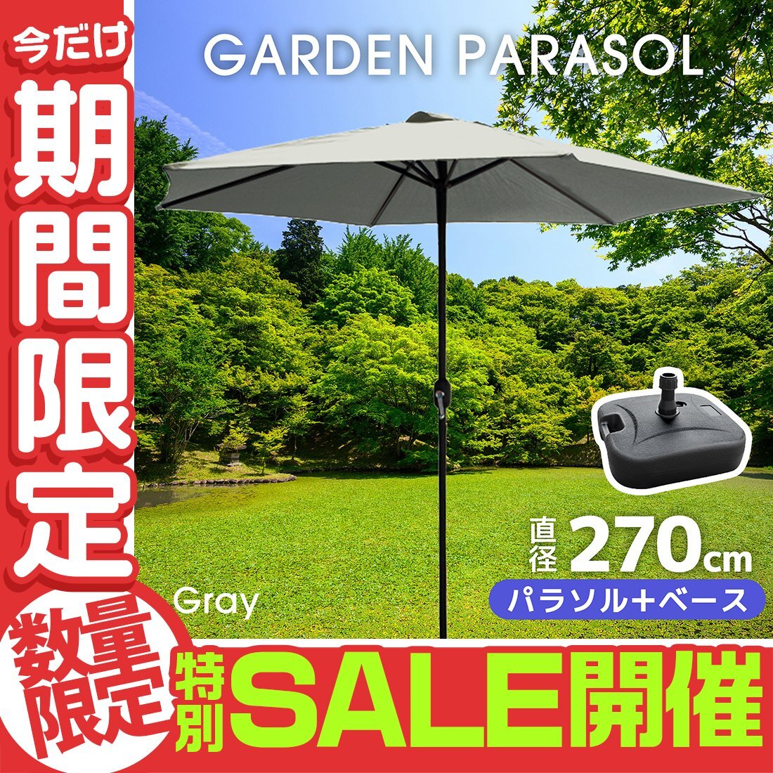 日差しから守るガーデンパラソルです。 バーベキューにピクニックにビアガーデンと晴れた日には欠かせないアイテム! ハンドル式で開閉が簡単! ハンドルをくるくる回るだけなので、女性でも簡単に傘を開くことができます。 パラソルの支柱は2つに分かれるので、持ち運びもラクラク! 水や汚れに強い撥水加工! 雨に濡れても水を弾くので、雨漏れする心配はありません!お手入れもサッと拭くだけで簡単! ※完全防水ではありません。 中に水を入れて使用するパラソルベーススタンド。 ガーデンやベランダでのパラソルの使用でオススメ! 使用後は中の水を抜けば軽くなるので持ち運びにも便利です。 本体は取っ手付きなので持ち運びがラクラク! ポール受けキャップは本体に収納できます。 パラソルスタンド以外にも、のぼり等のスタンドに最適! 【商品仕様】 カラー:グレー オープン時サイズ(約):幅2700×奥行2700×高さ2370mm 支柱径(約)直径40mm 重量(約):4.5kg 材質:ポリエステル、アルミ ●ベース(土台) サイズ(約):幅450×奥行450×高さ270cm 重量(約):1.5kg 水を入れた時の重量(約):21.5kg 対応パラソル(約):直径40mm対応 カラー:ブラック 材質:ポリエチレン他 【注意事項】 ・お客様による組み立て商品です。 ・強風時は破損、転倒などの危険がありますので、ご使用はおやめください。 ・傘生地には撥水加工をしておりますが、完全防水ではありません。 ・同梱されている説明書に一部誤りがございます。パラソル固定用のネジが2個と記載されていますが1個の誤りです。予めご了承ください。 |