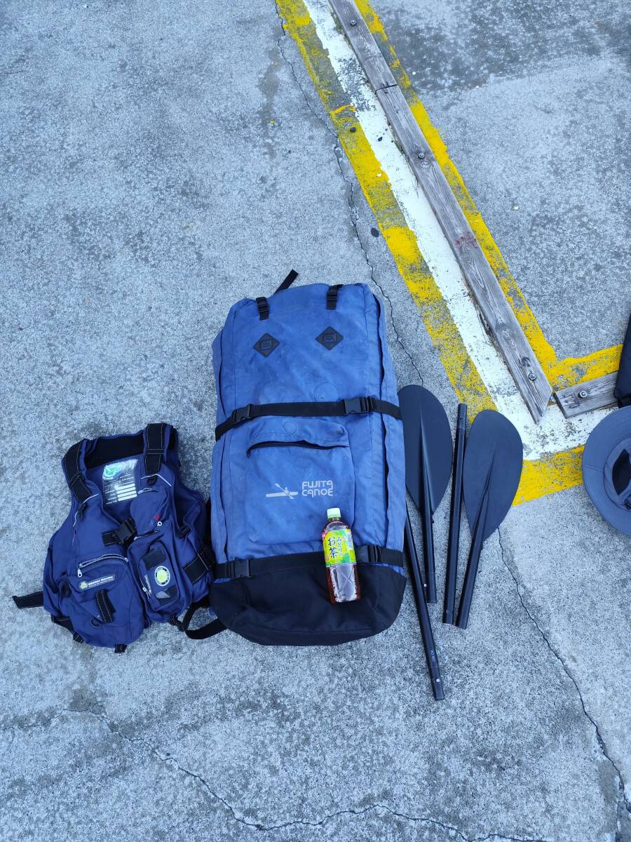 パドルは4分割なのでコンパクトにバッグに収まり、一式を離島に送る事ができます。