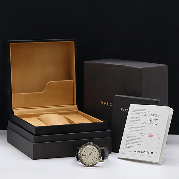 1円 保/箱付 稼働 ブルガリ ブルガリブルガリ BB38SLAUTO AT/自動巻 ホワイト文字盤 メンズ腕時計 0055110 12BGT SMZ