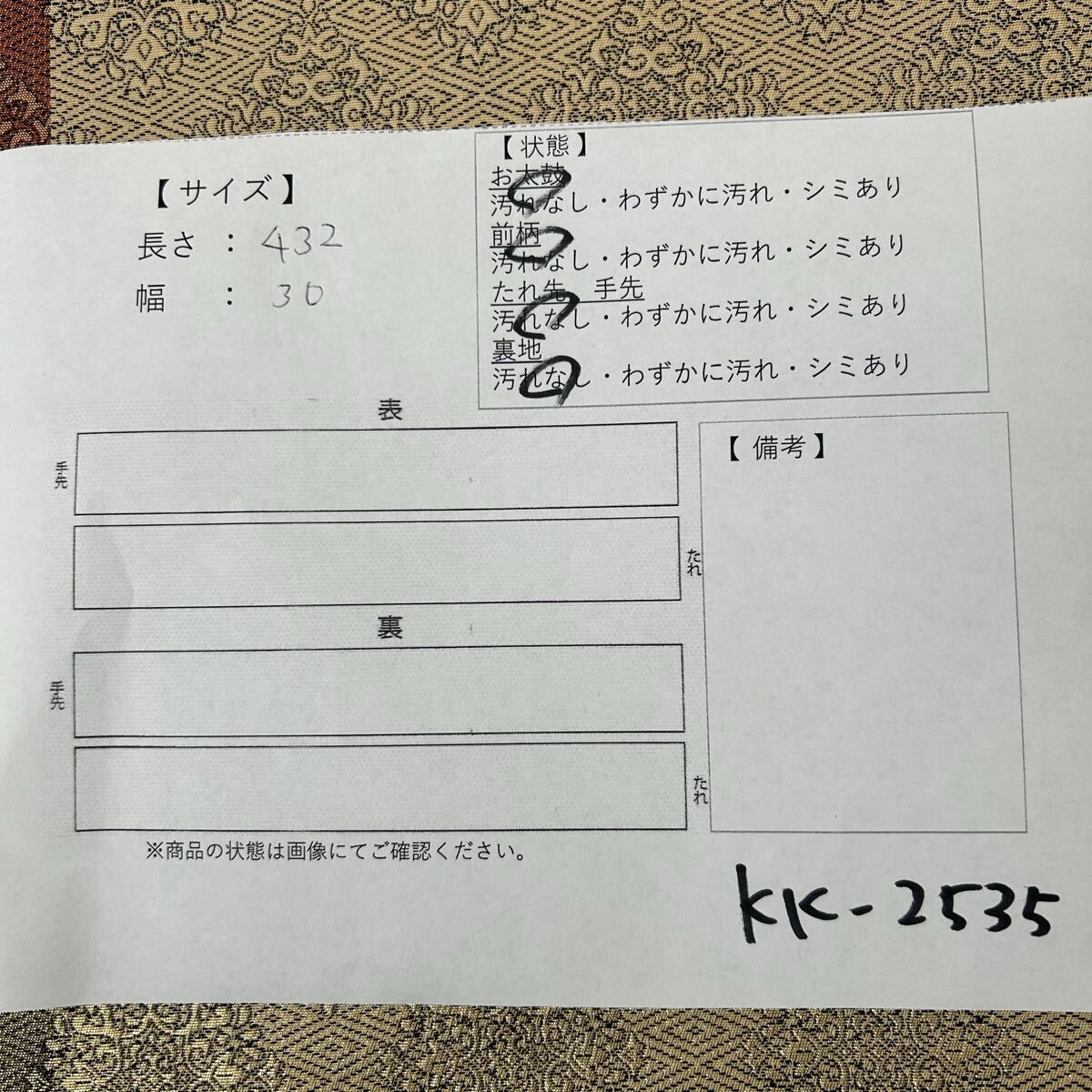 画像内に検品表を掲載しております。