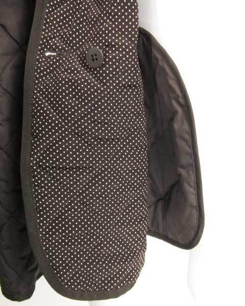 | 軽いキルティングデザインの使えるアウター。スカートでもパンツでも合わせて頂ける絶妙なお丈です。内側がドット柄になっているので、脱いだ時にとってもかわいいですよ。一枚持っていると使える便利アイテムです。 |