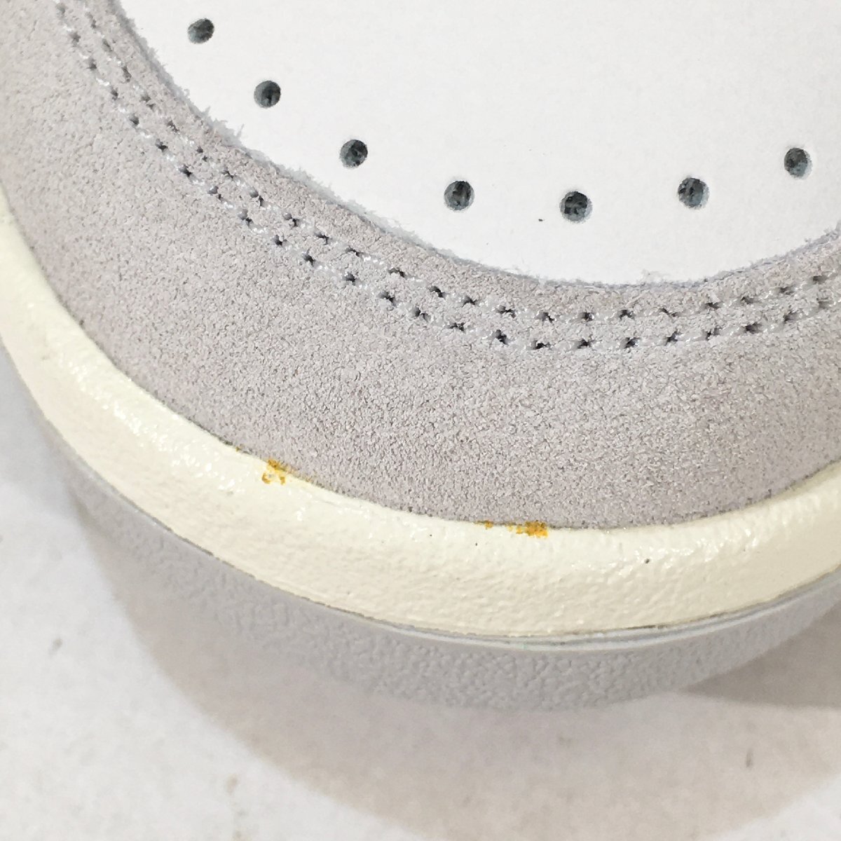 ・アッパーの状態:未使用状態ですが、右足つま先のミッドソールとの境目部分にオレンジ色っぽい小さな汚れが2箇所ございます。