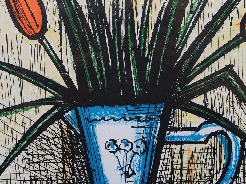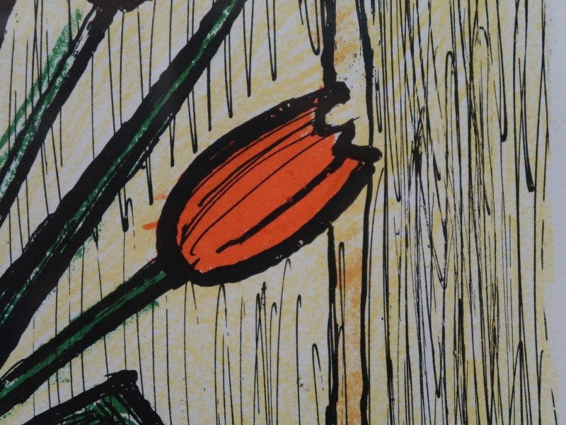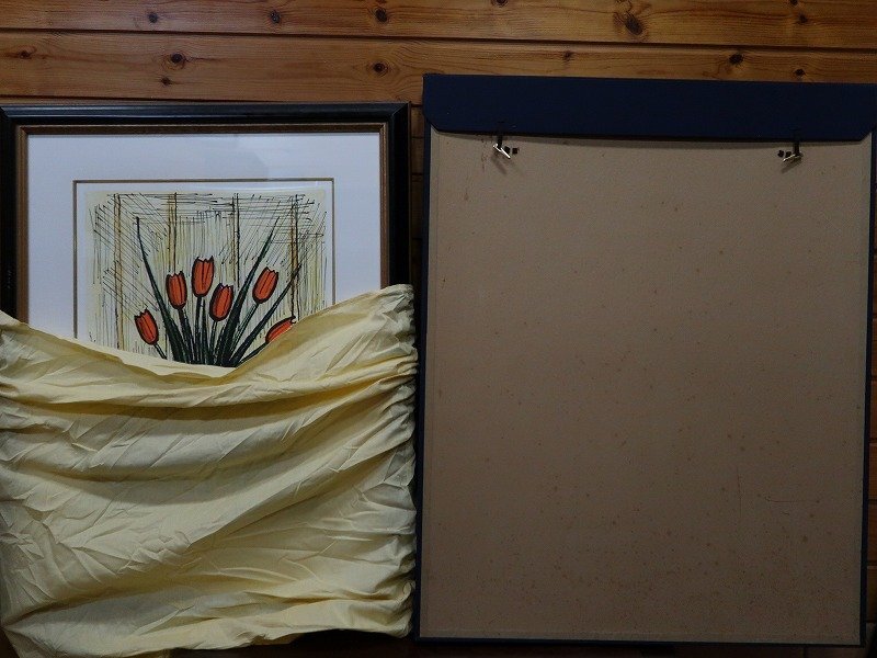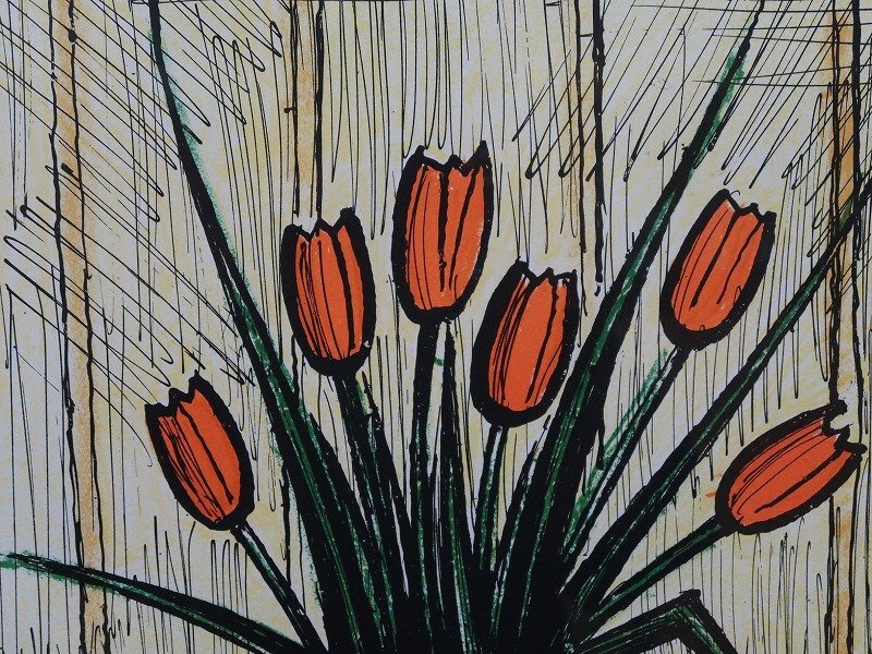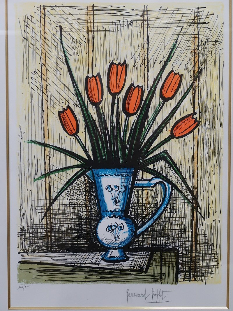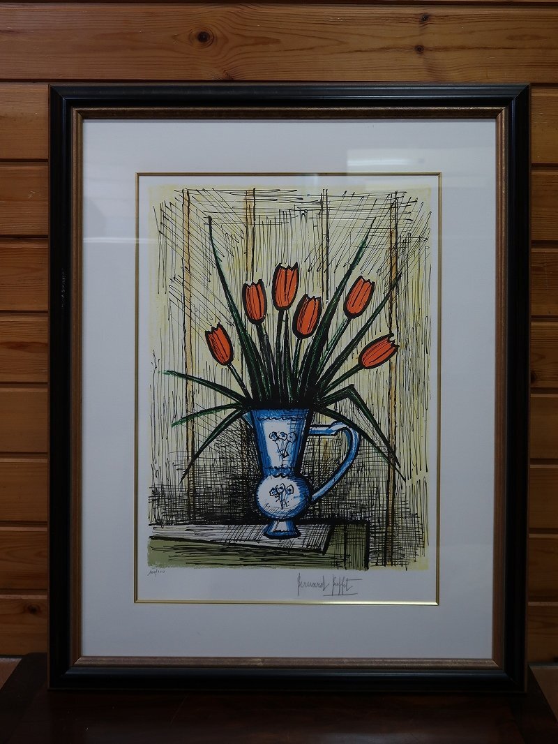 【青宝】112582ベルナール・ビュッフェ「チューリップ」版画 リトグラフ 100/100 直筆サイン 額装(4328340/16)