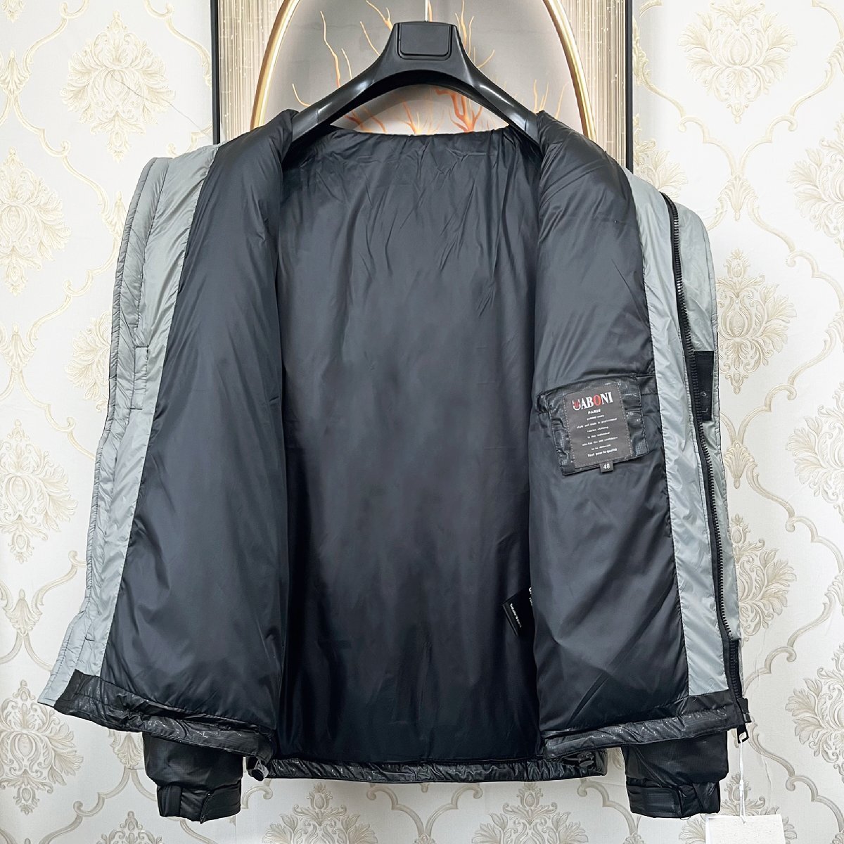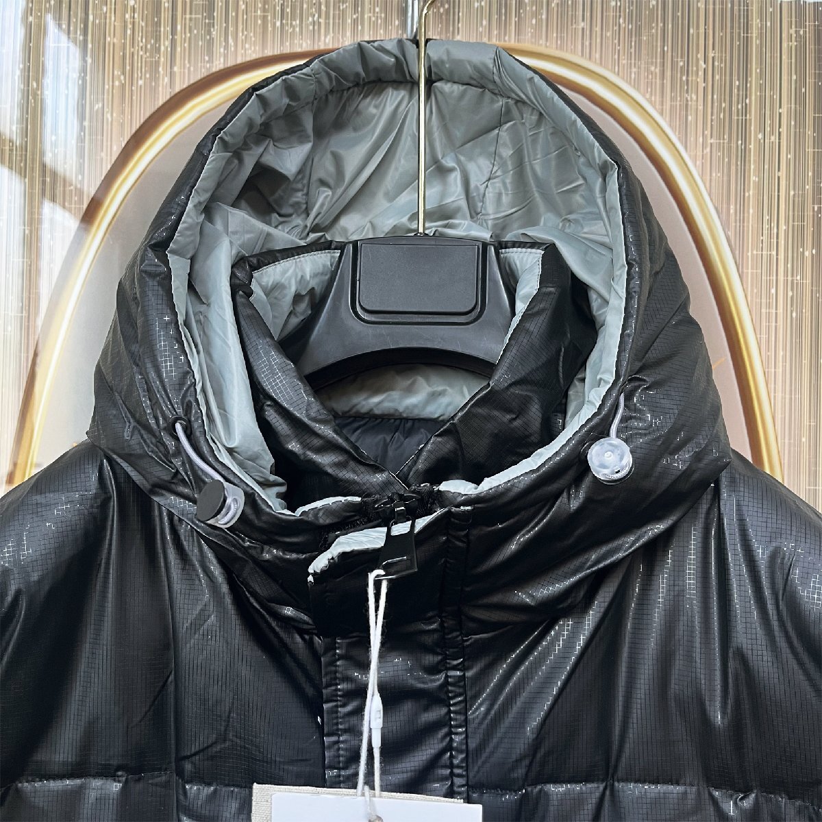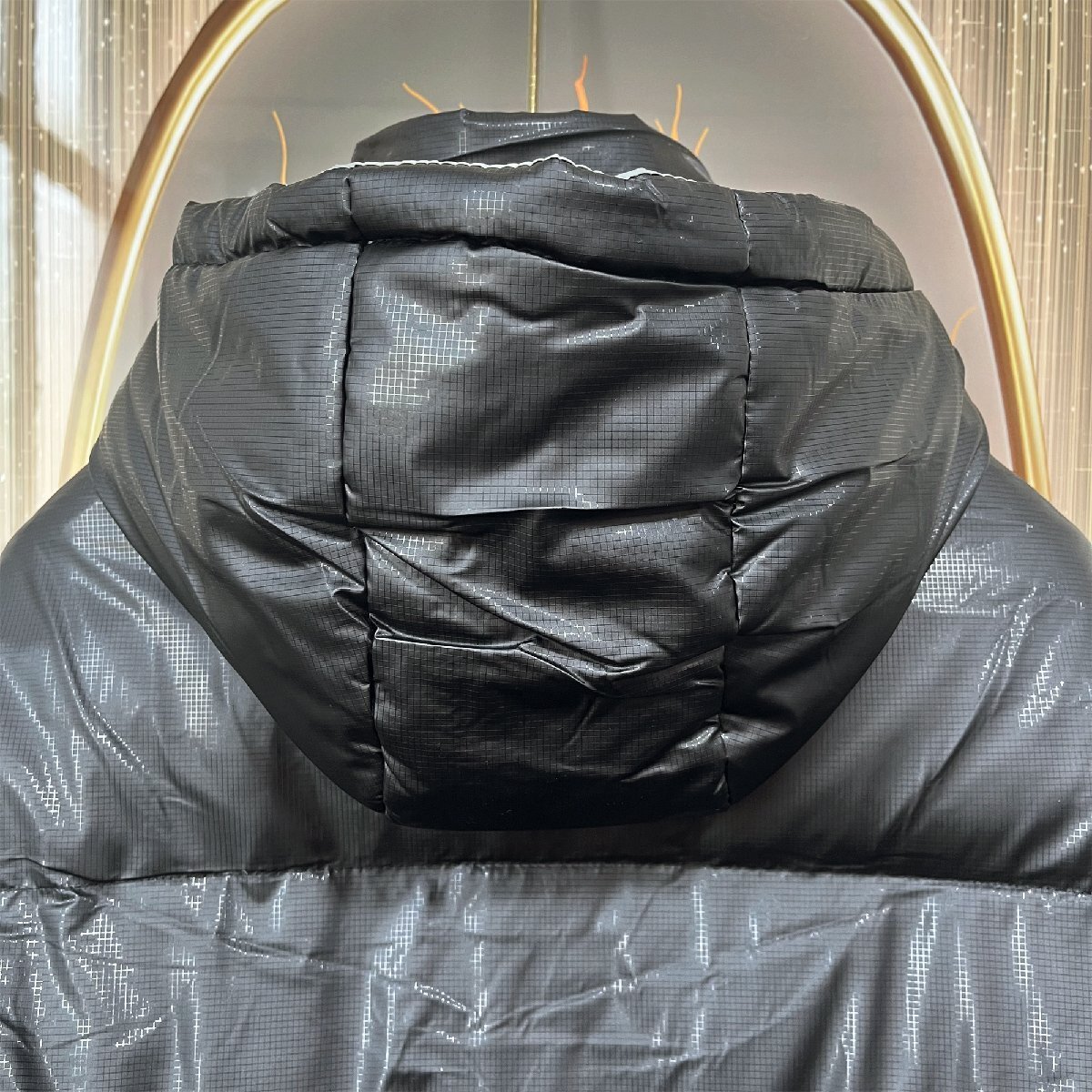 詰め物は自社で精選、加工した高品質のポランド産ダックダウンを十分に充填しており、保湿性・断熱性に優れ、たっぷりと空気を含んでおり軽量で暖かいのが魅力。表地に耐久性、防風性、透湿性を備えた機能素材を使用して光沢感とシワ感があり、様々な機能性に優れることはもちろん、しっかりとした最高の生地で、多少の防水撥水を備えます。完全防水ではないですが、少々の雨くらいなら気にせず着られる撥水性があるのも嬉しいポイント。