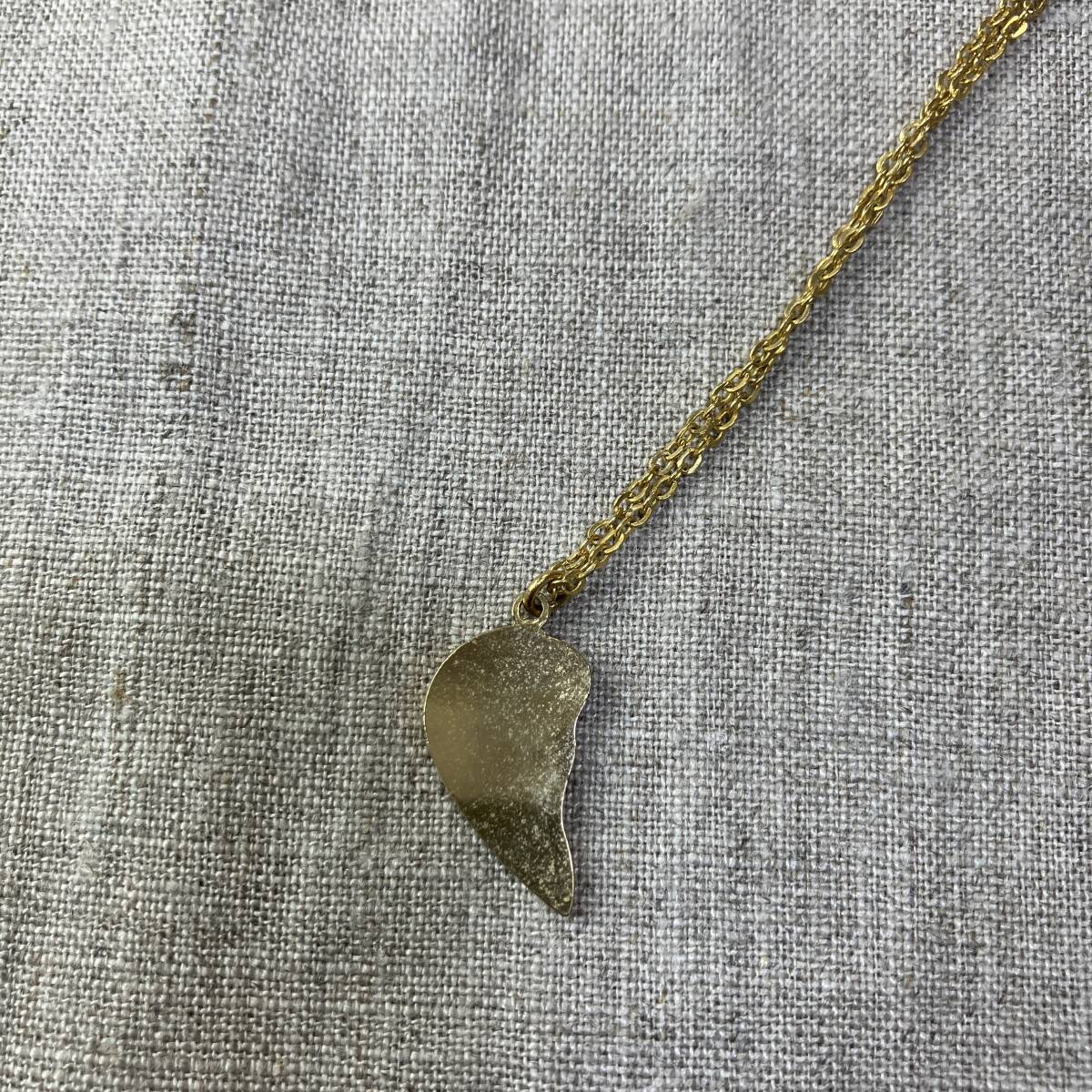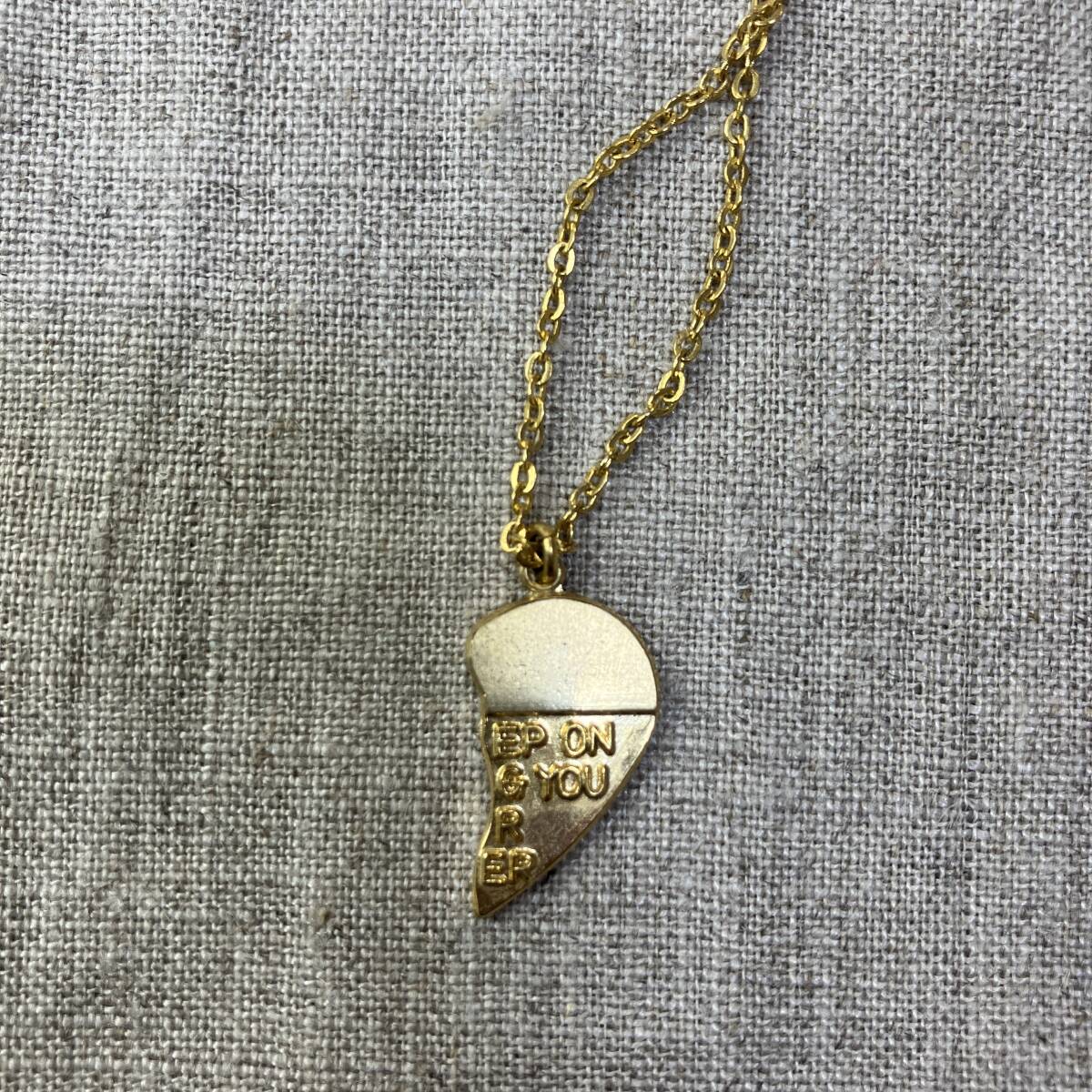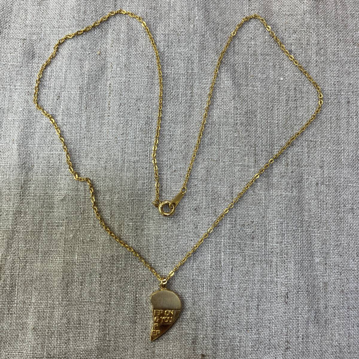 【一点もの】ペアネックレス 片割れ ハート 半分 ゴールドカラー 刻印入り メッセージ パズルピース 中古 良品