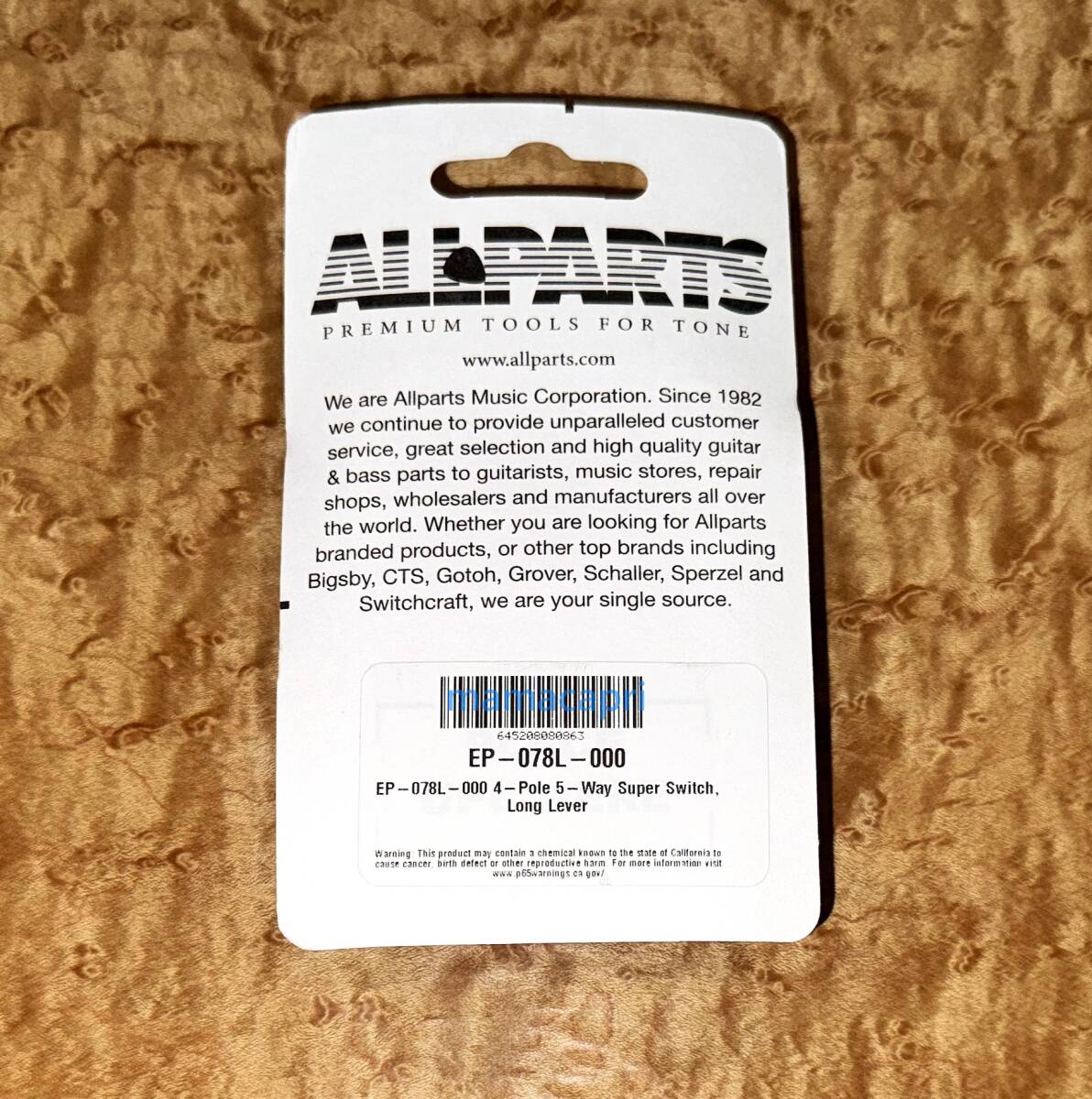 ALLPARTS Oak Grigsby 4-Pol, Double Wafer 5-way Super Switch for Guitar Long Lever With Stainless Steel Screws EP-078L-000 オールパーツ オーク グリグスビー 5WAY スーパー スイッチ ギター向け セレクター ロング タイプ 1Set合計= 5WAYスーパースイッチ 1個 (ネジ付属) オールパーツ 商品各種取揃えて出品中! |