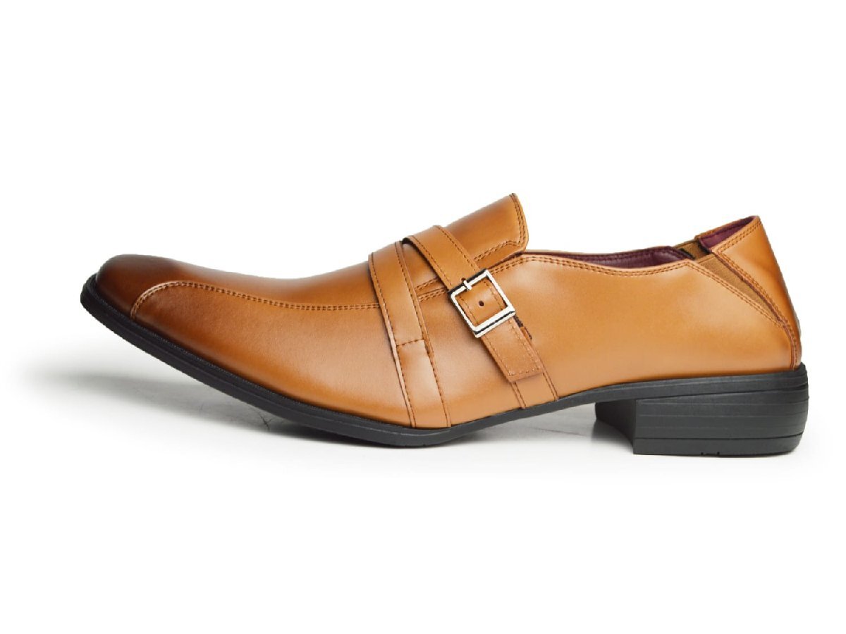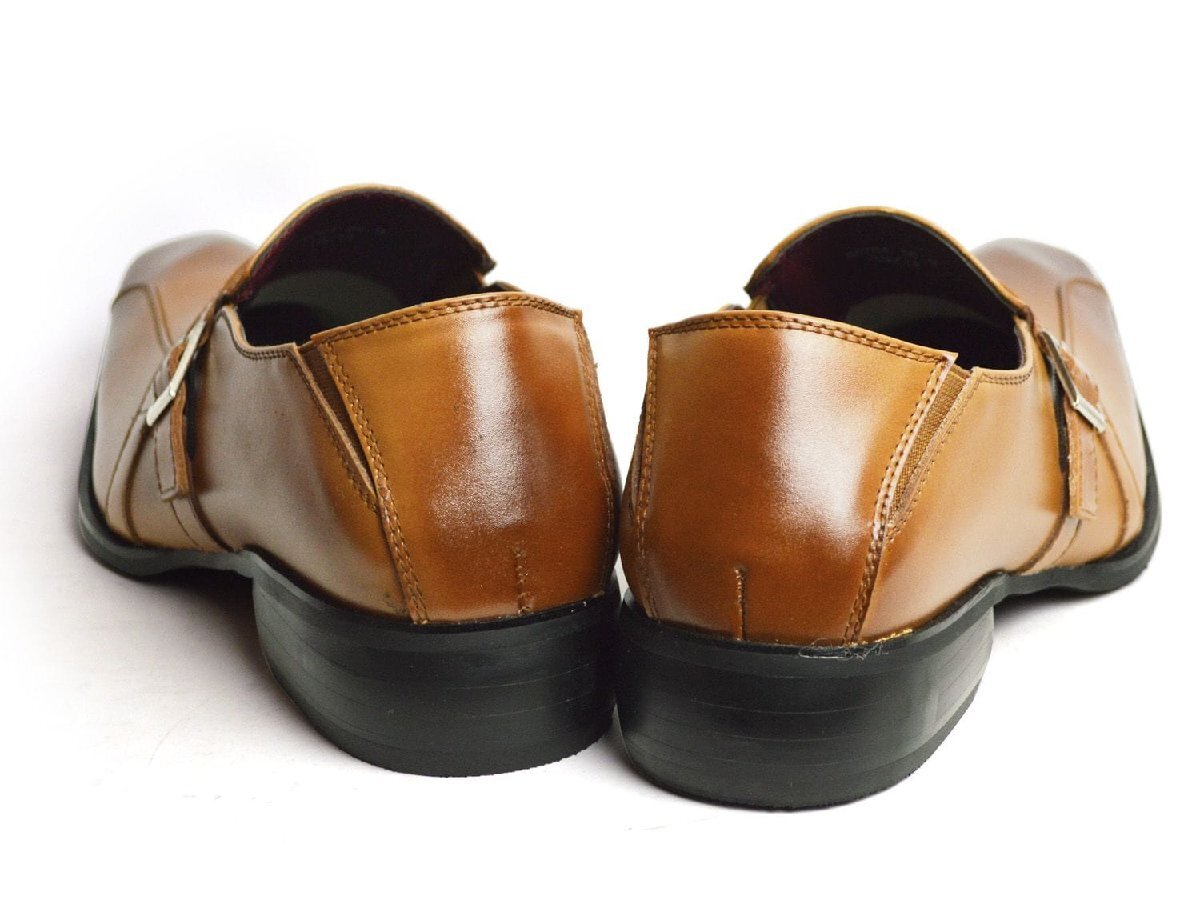 新品■25.5cm ビジネスシューズ 革靴 モンクストラップ スワールモカ ライン 脚長 スクエアトゥ ロングノーズ 2E 日本製 フォーマル 紳士靴