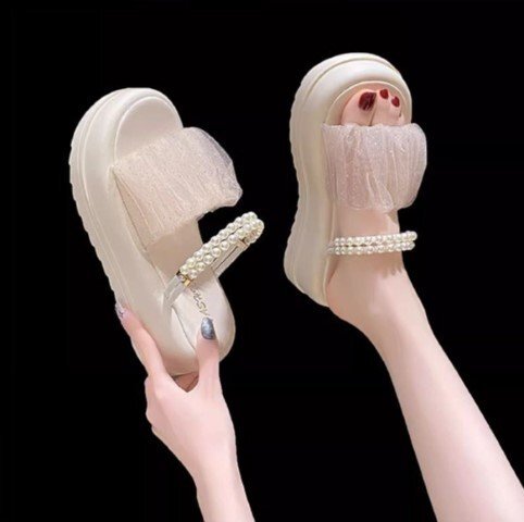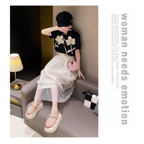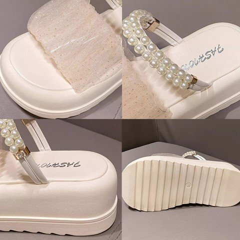 ・足元をパッと華やかに見せるキラキラチュールサンダル。